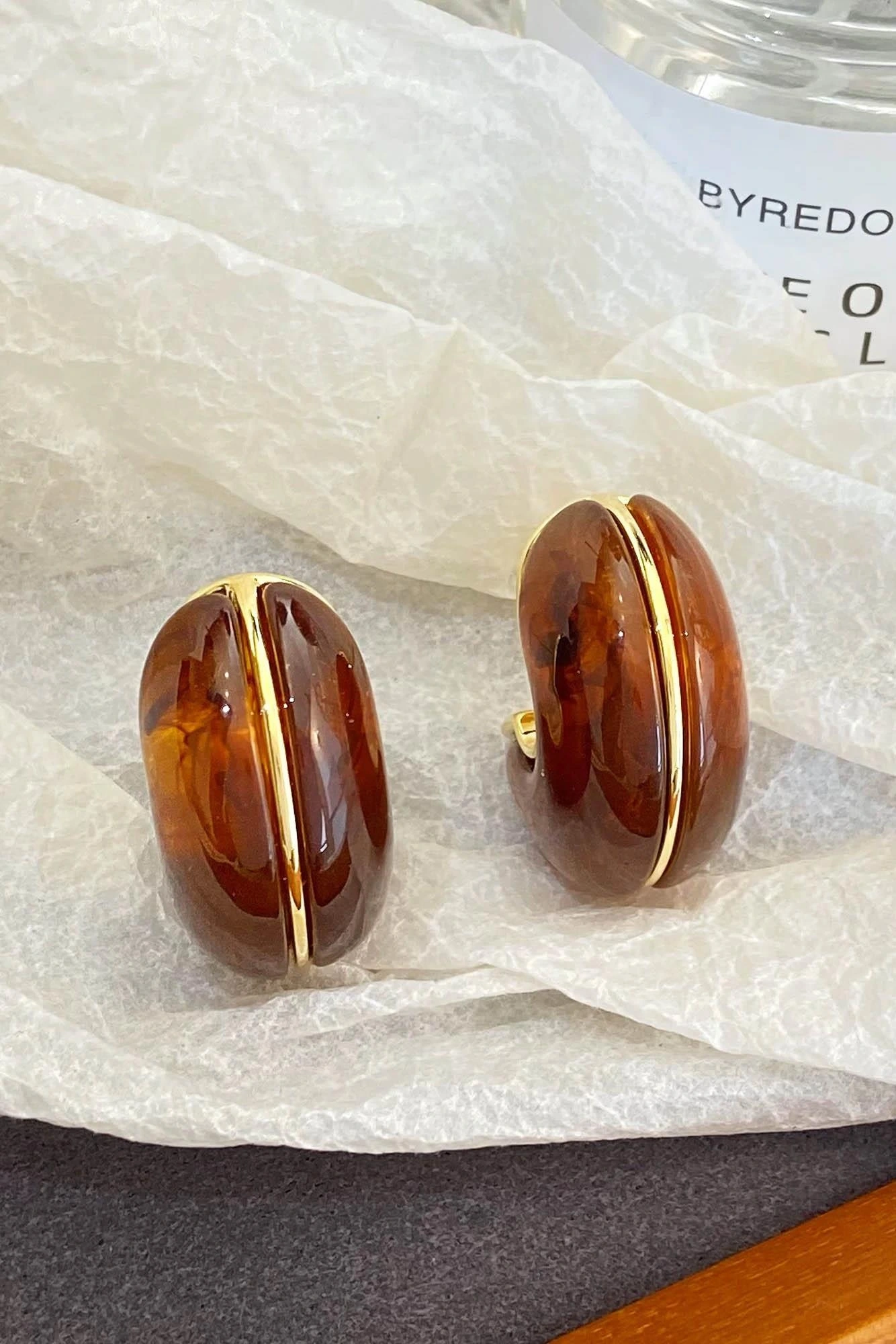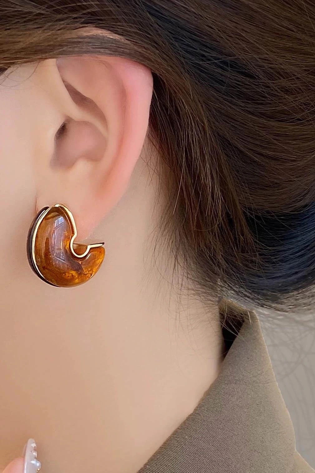 Altın Ve Kahve Renk Taş Detaylı Küpe (Çift)
