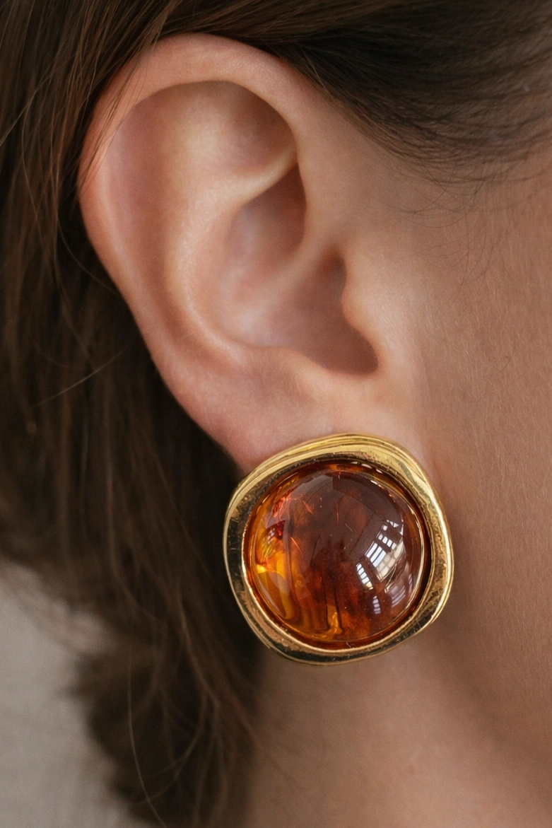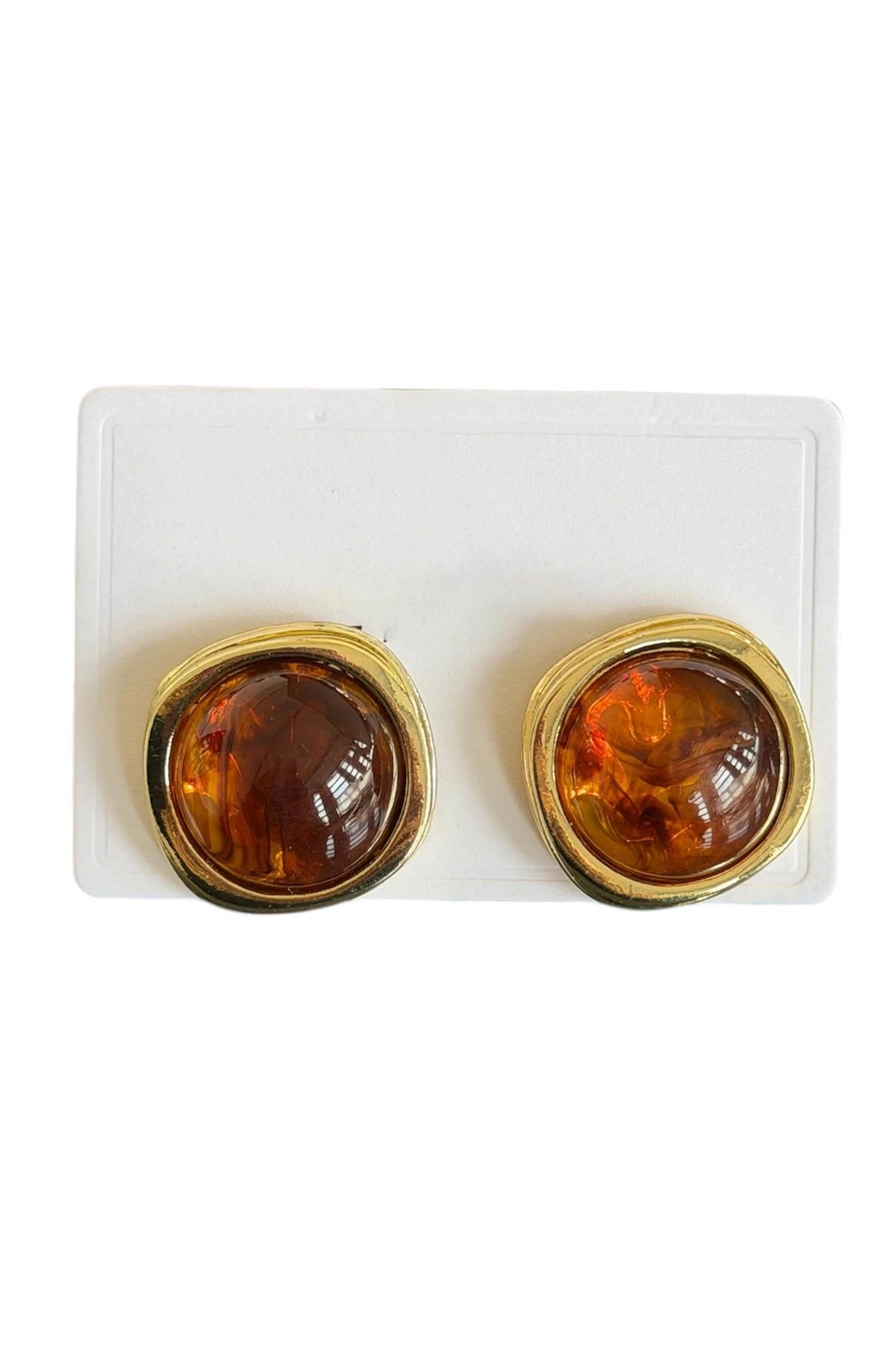 Altın Ve Kahve Renk Taş Detaylı Küpe (Çift)