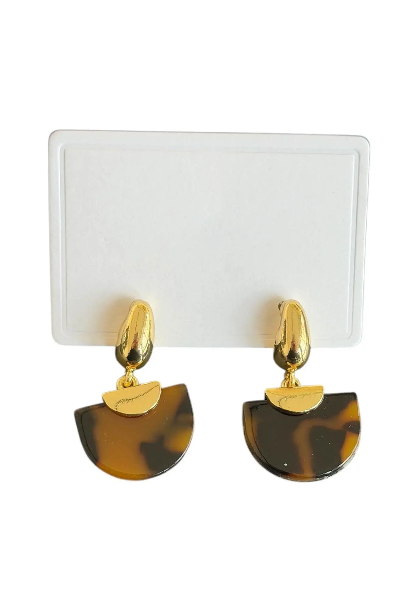 Altın Renk Kahverengi Taş Detaylı Küpe (Çift)
