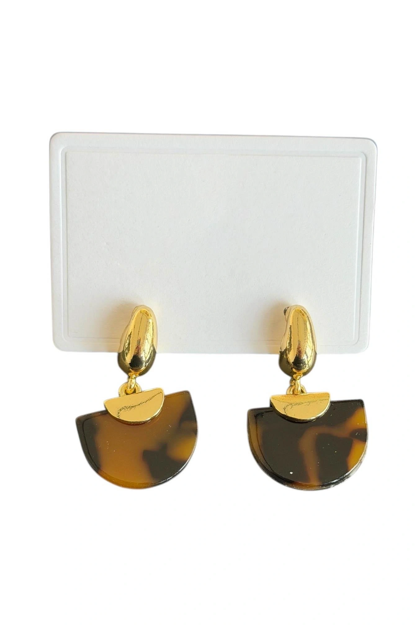 Altın Ve Kahve Renk Taş Detaylı Küpe (Çift)