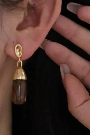 Altın Ve Kahve Renk Taş Detaylı Küpe (Çift)