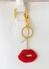 Altın Ve Kırmızı Renk Dudak Figürlü Taş Detaylı Çanta Charm/ Anahtarlık
