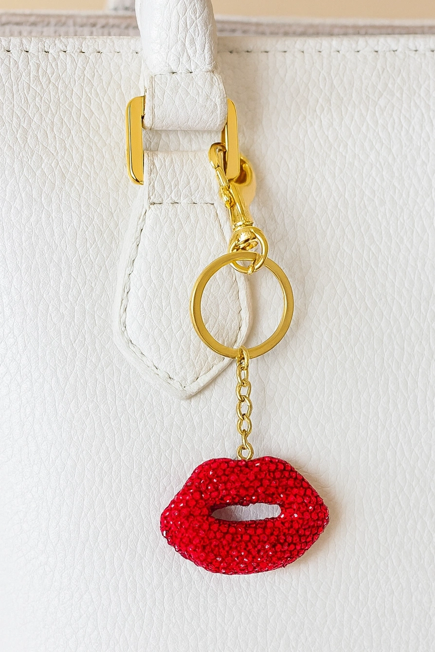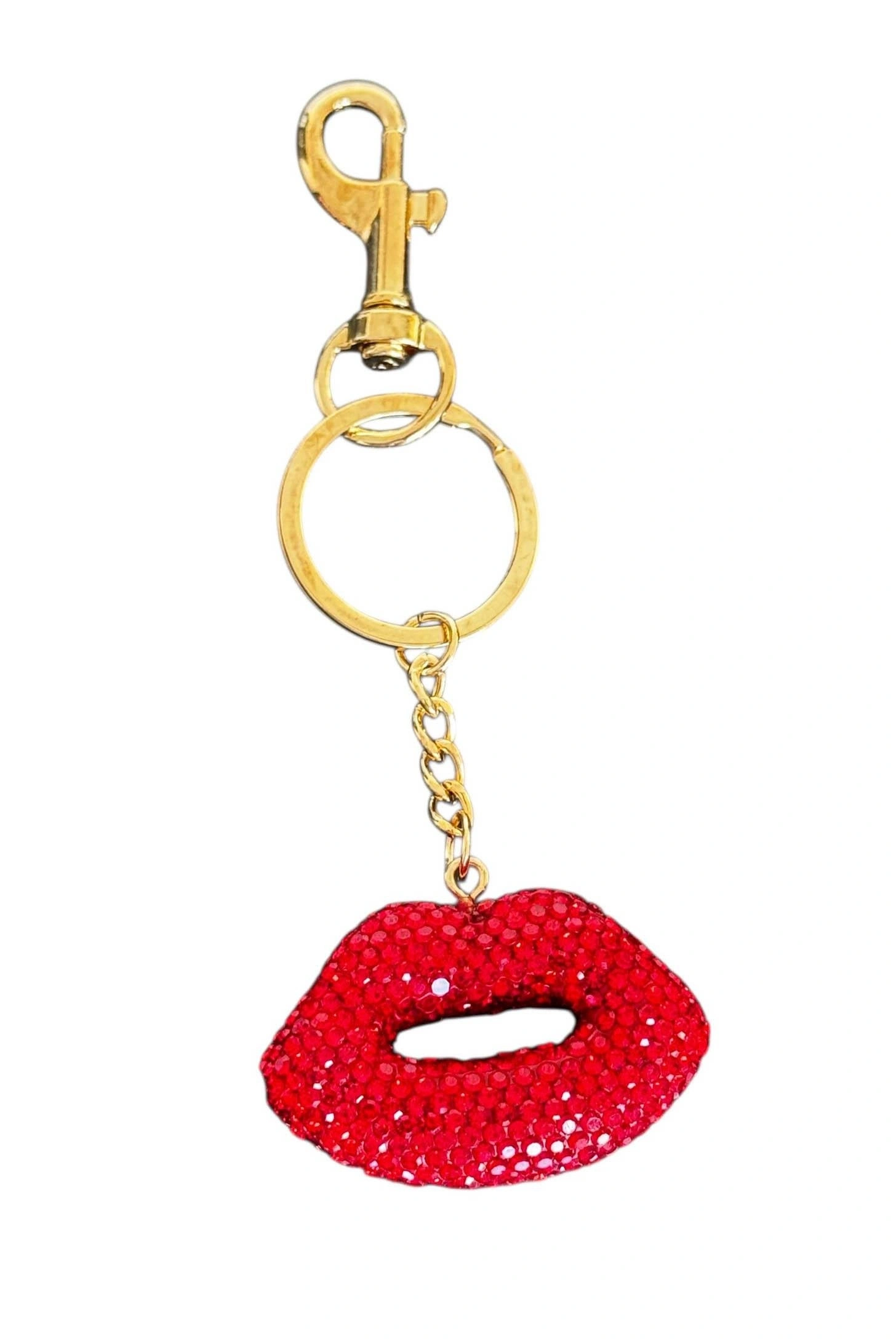 Altın Ve Kırmızı Renk Dudak Figürlü Taş Detaylı Çanta Charm/ Anahtarlık