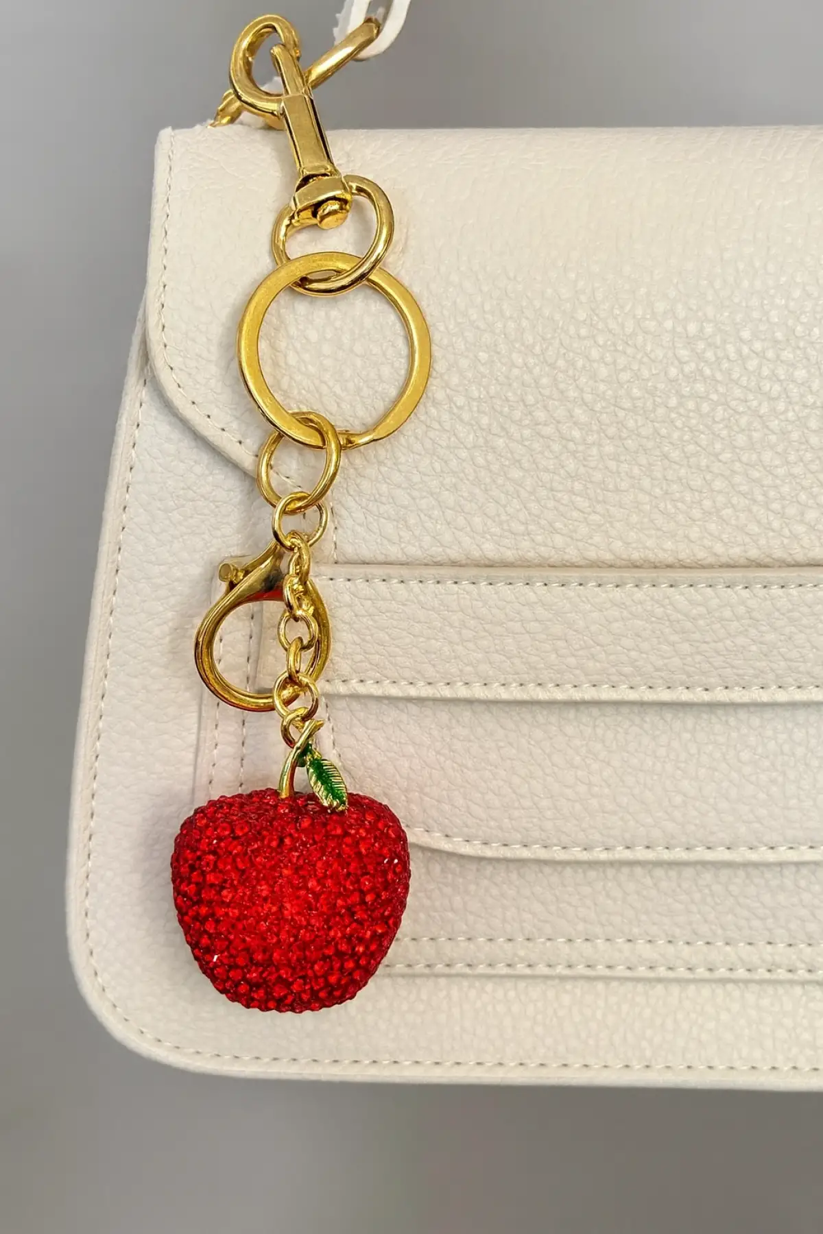 Altın Renk Elma Figürlü Taş Detaylı Çanta Charm/ Anahtarlık