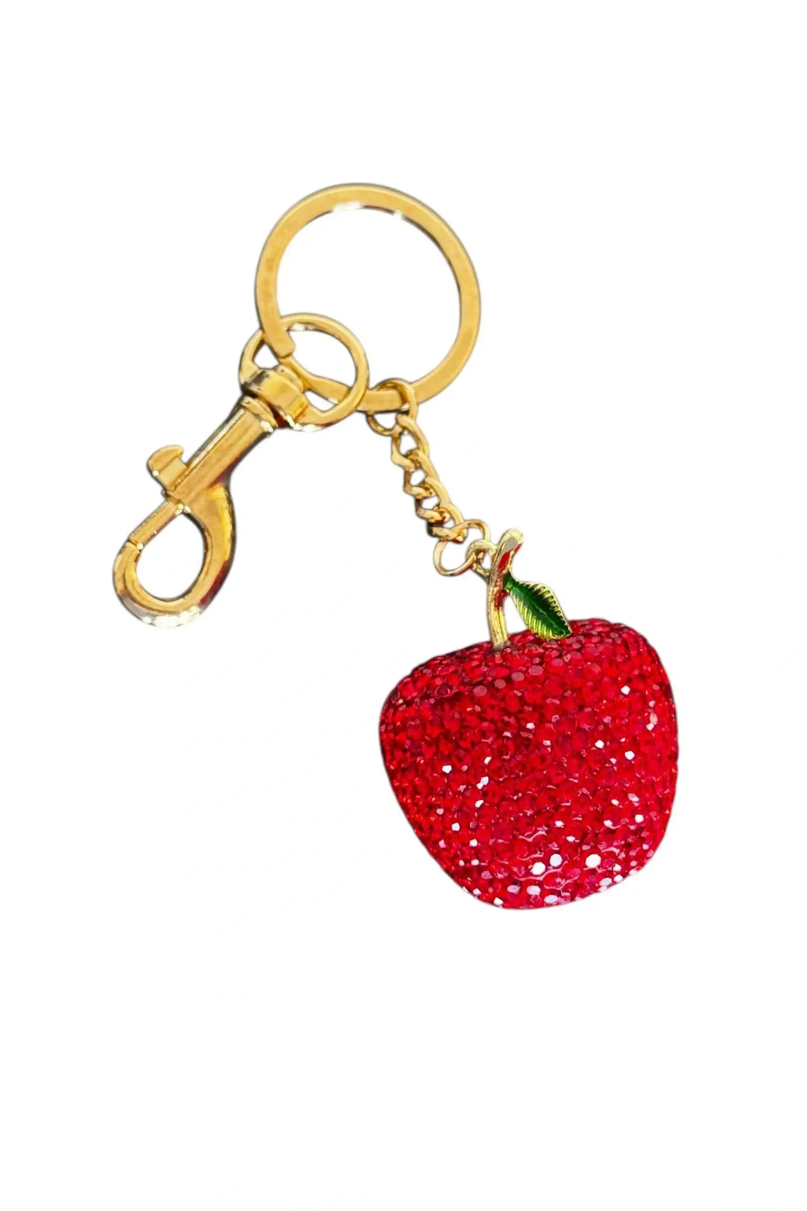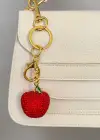 Altın Ve Kırmızı Renk Elma Figürlü Taş Detaylı Çanta Charm/ Anahtarlık