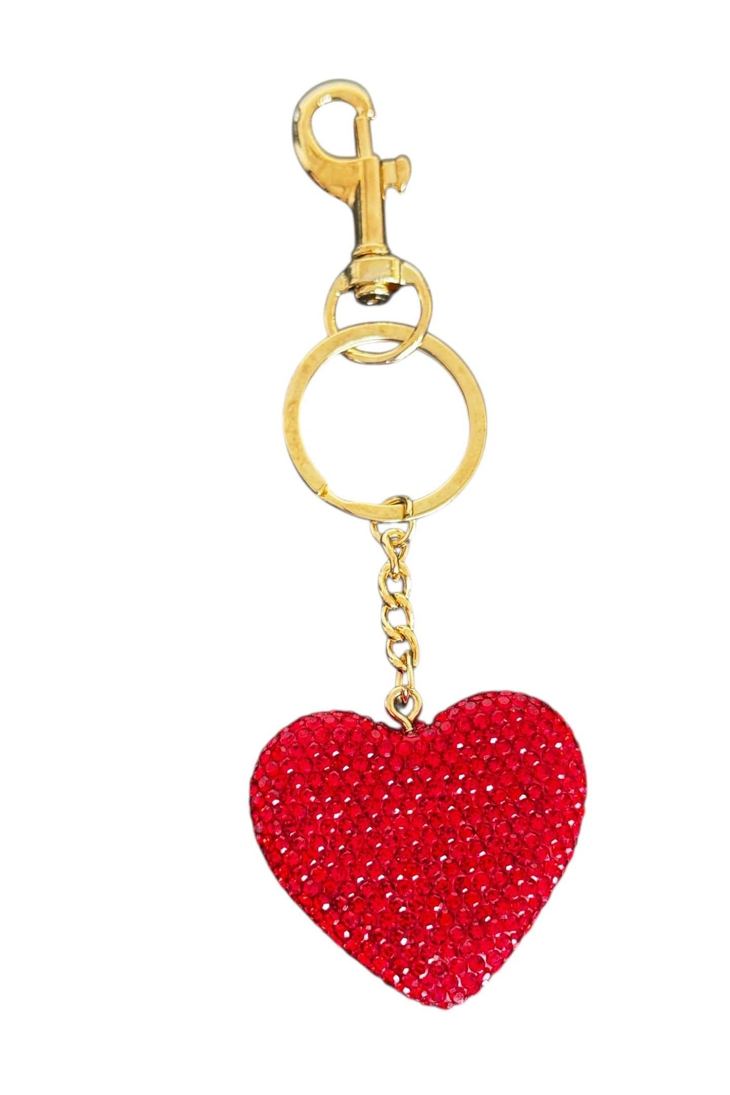 Altın Ve Kırmızı Renk Kalp Figürlü Taş Detaylı Çanta Charm/ Anahtarlık