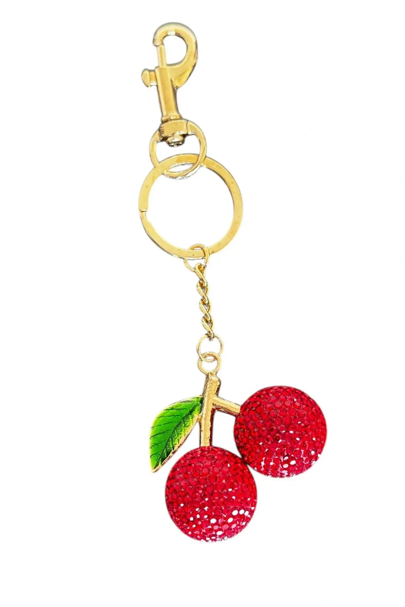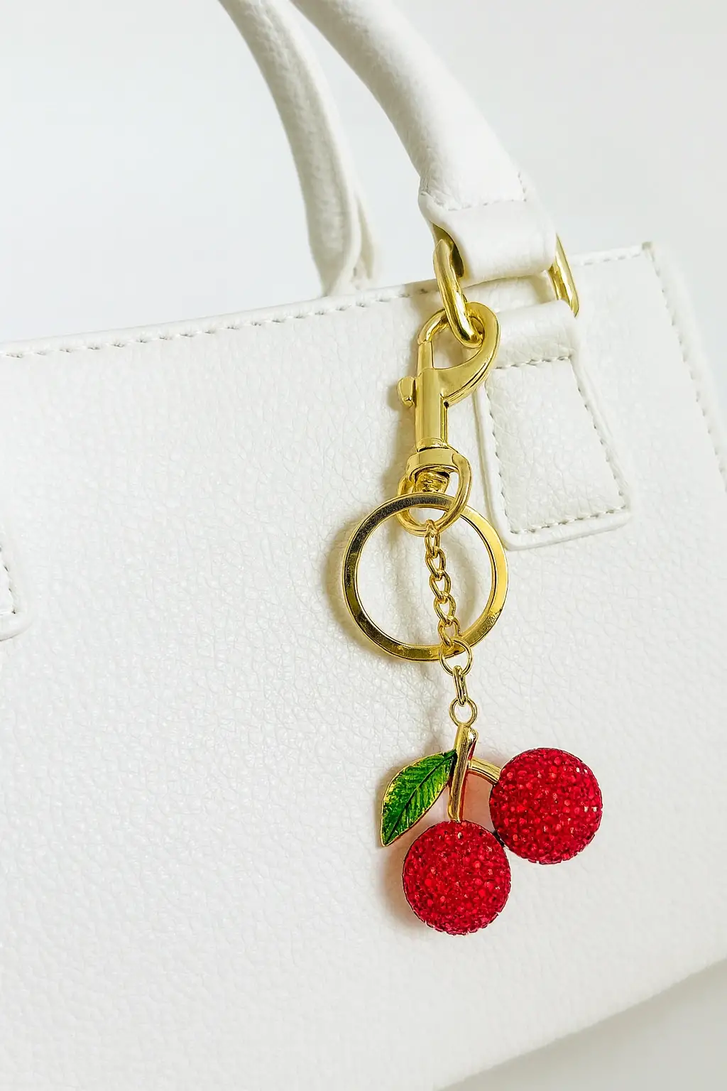 Altın Ve Kırmızı Renk Kiraz Figürlü Taş Detaylı Çanta Charm/ Anahtarlık