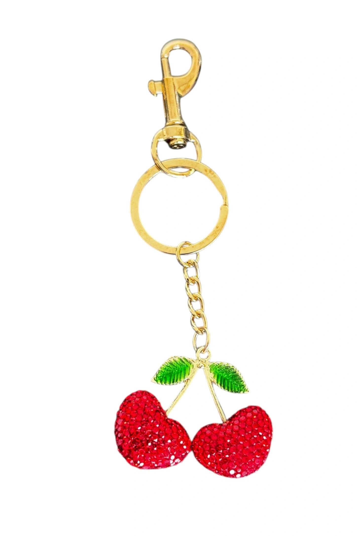 Altın Ve Kırmızı Renk Kiraz Figürlü Taş Detaylı Çanta Charm/ Anahtarlık