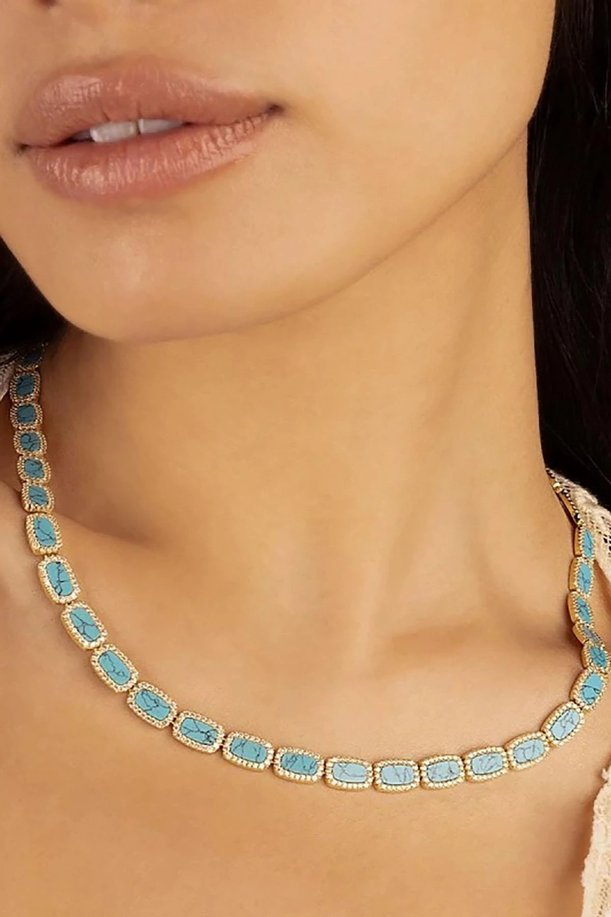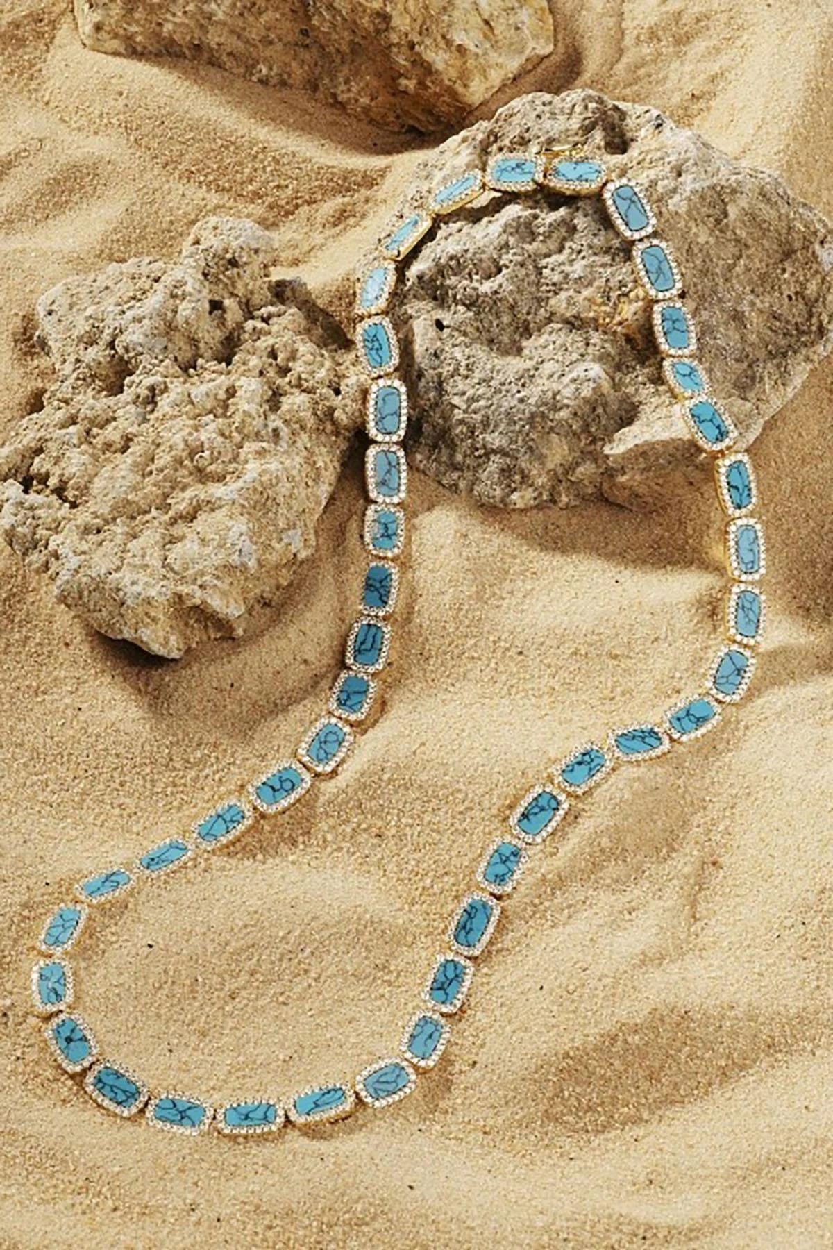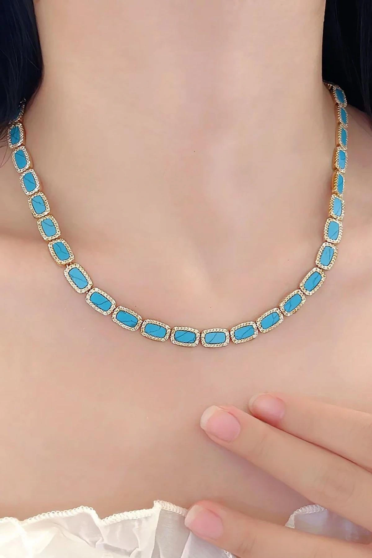 Altın Ve Mavi Renk 14K Altın Kaplama VİP Kolye