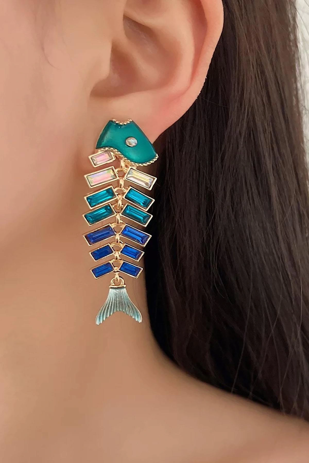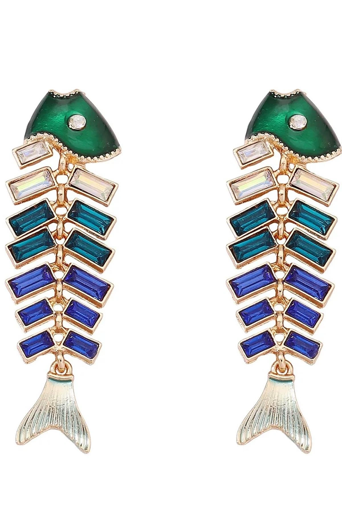 Altın Ve Mavi Renk Balık Figürlü Taş Detaylı Küpe (Çift)