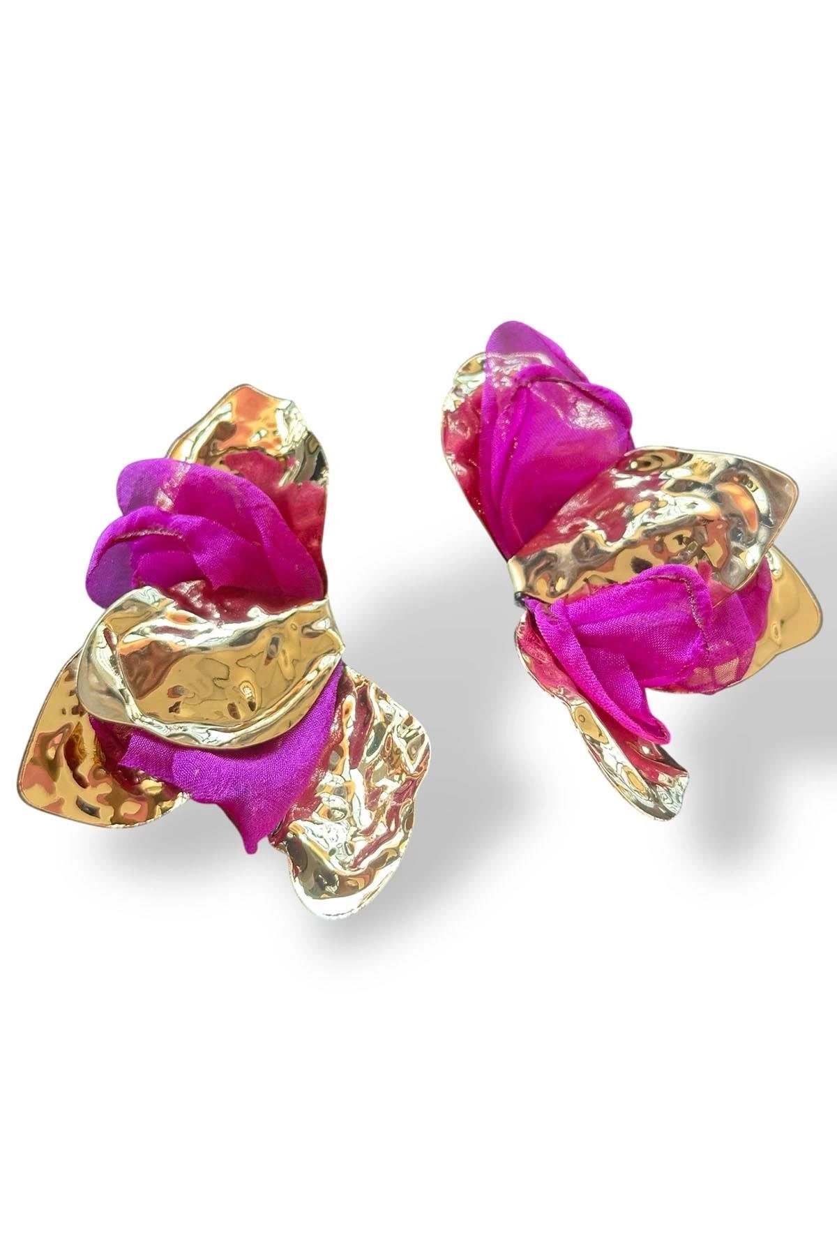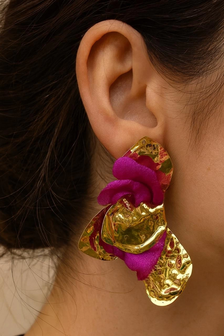 Altın Ve Mor Çiçek Detaylı Tasarım Küpe (Çift)
