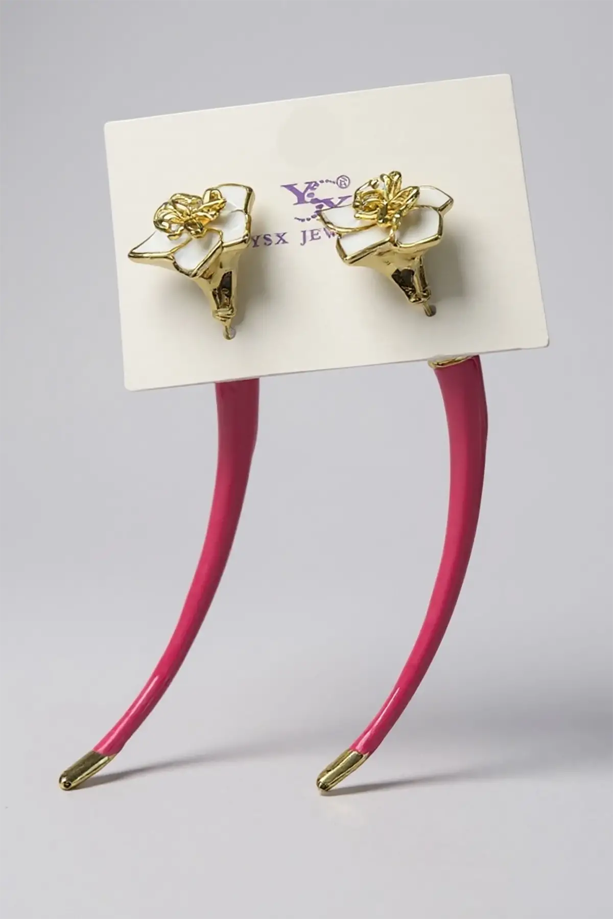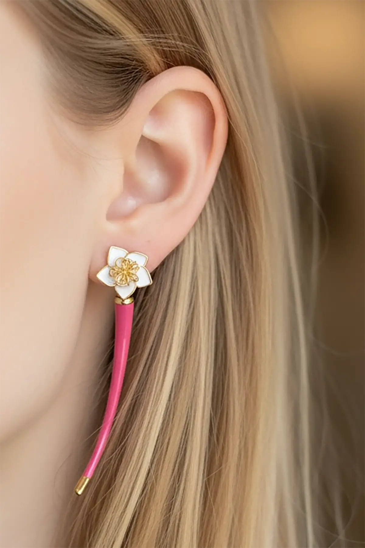 Altın Ve Pembe Renk Çiçek Detaylı YSX Küpe (Çift)