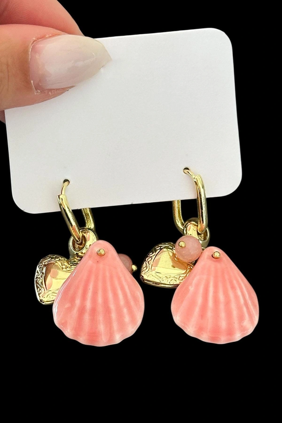 Altın Ve Pembe Renk Deniz Kabuğu Figürlü Küpe (Çift)