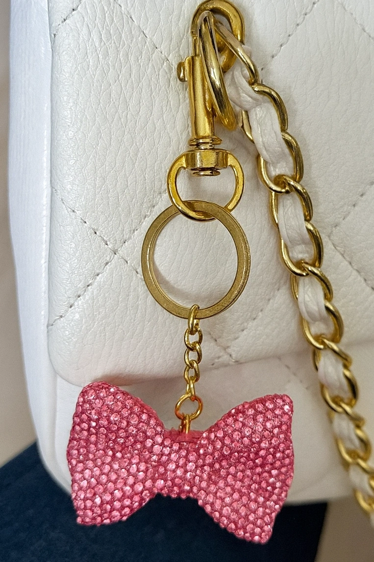 Altın Ve Pembe Renk Kurdele Figürlü Taş Detaylı Çanta Charm/ Anahtarlık