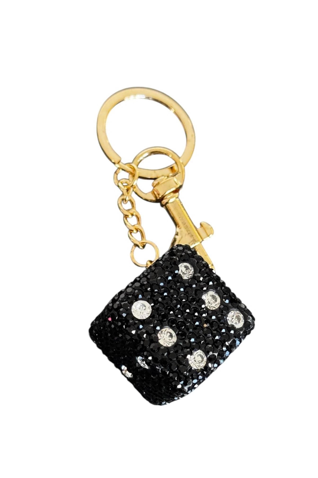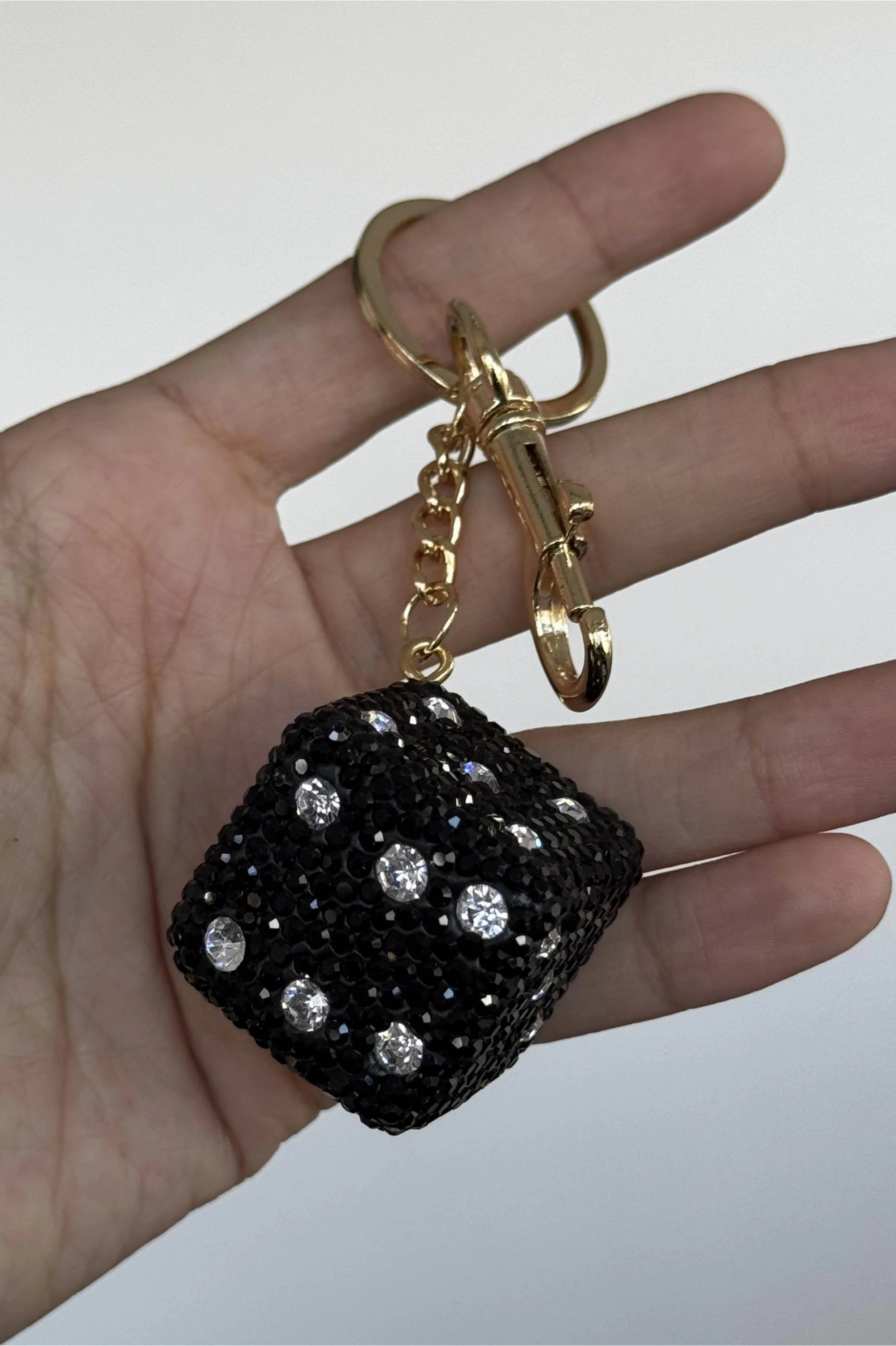 Altın Ve Siyah Renk Zar Figürlü Taş Detaylı Çanta Charm/ Anahtarlık