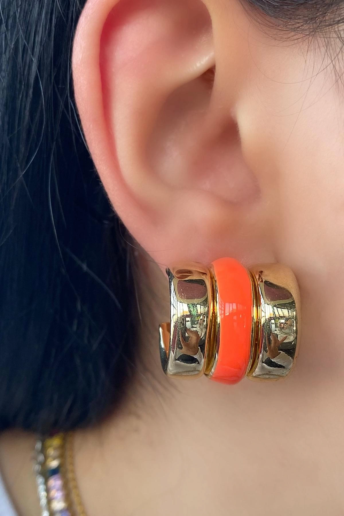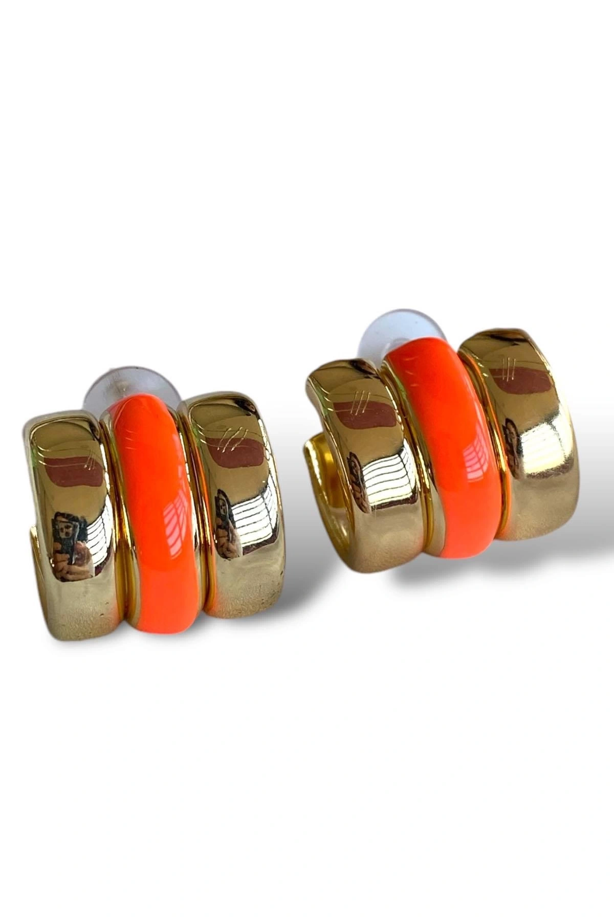 Altın Ve Turuncu Renk Halka Küpe (Çift)