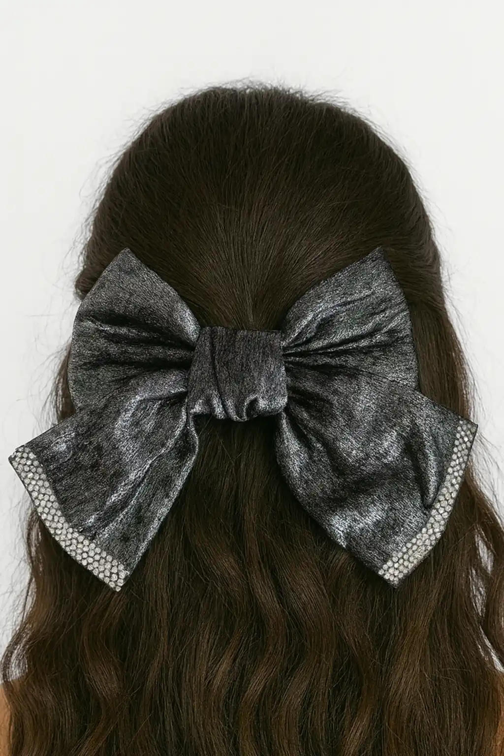 Antrasit Renk Kurdele Figürlü Taş Detaylı Otomat Toka