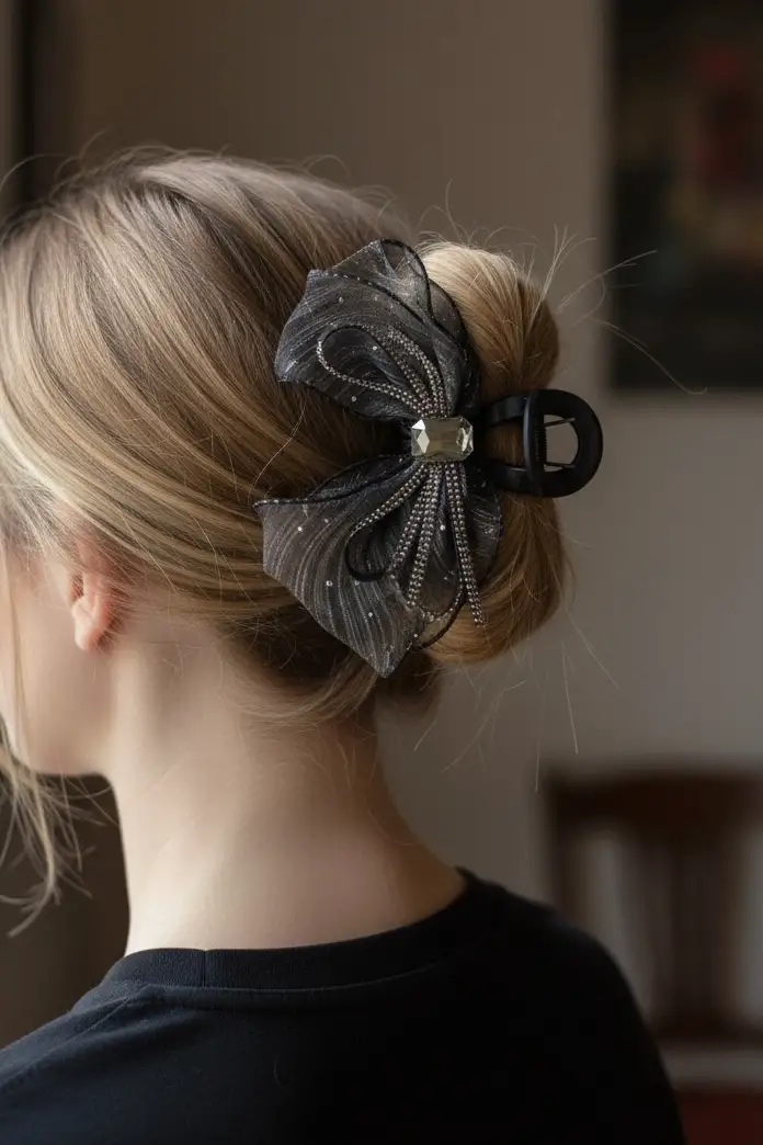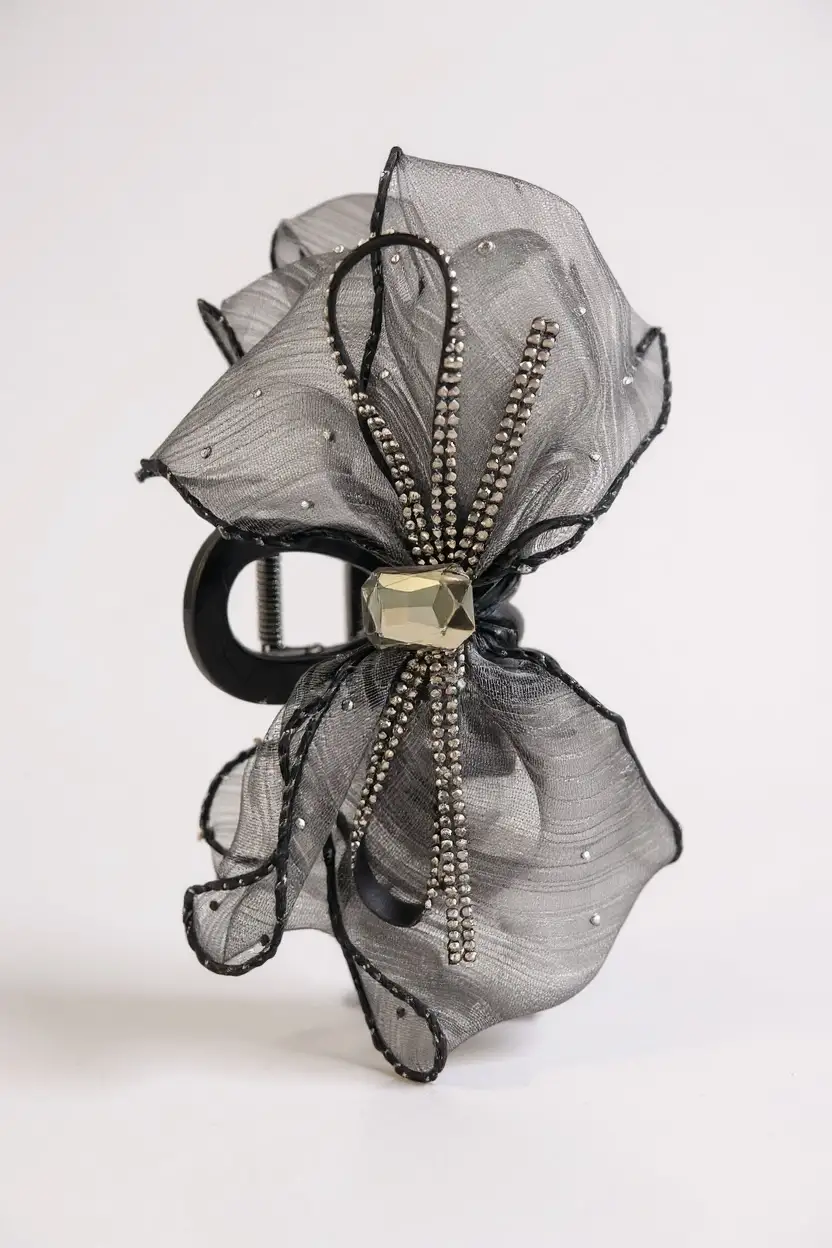 Siyah Renk Taş Detaylı Kurdele Figürlü Mandal Toka