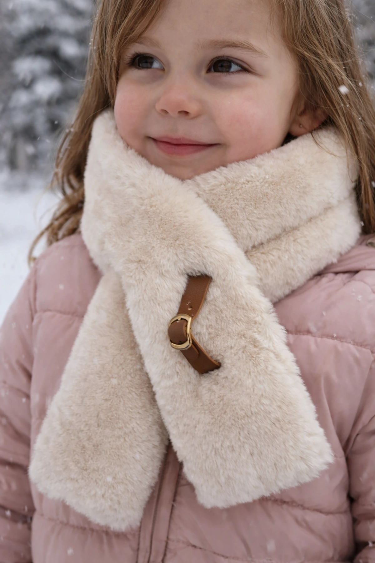 Bej Renk Çocuk Peluş Atkı
