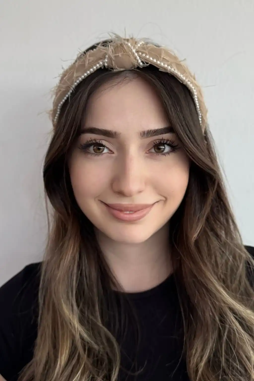Kahverengi Kurdele Detaylı İnci Sallantılı Peluş Taç