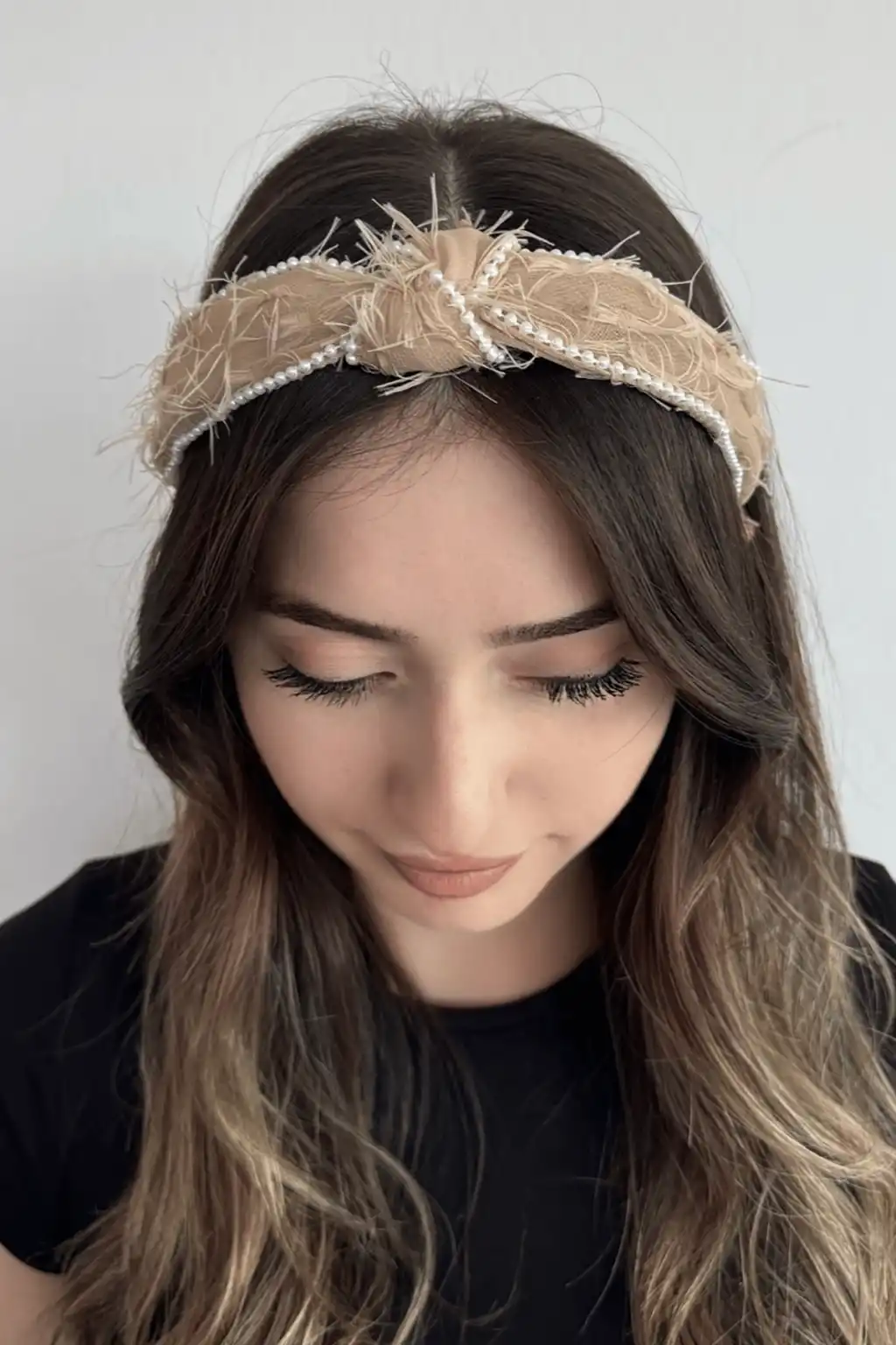 Bej Renk İnci Detaylı Taç