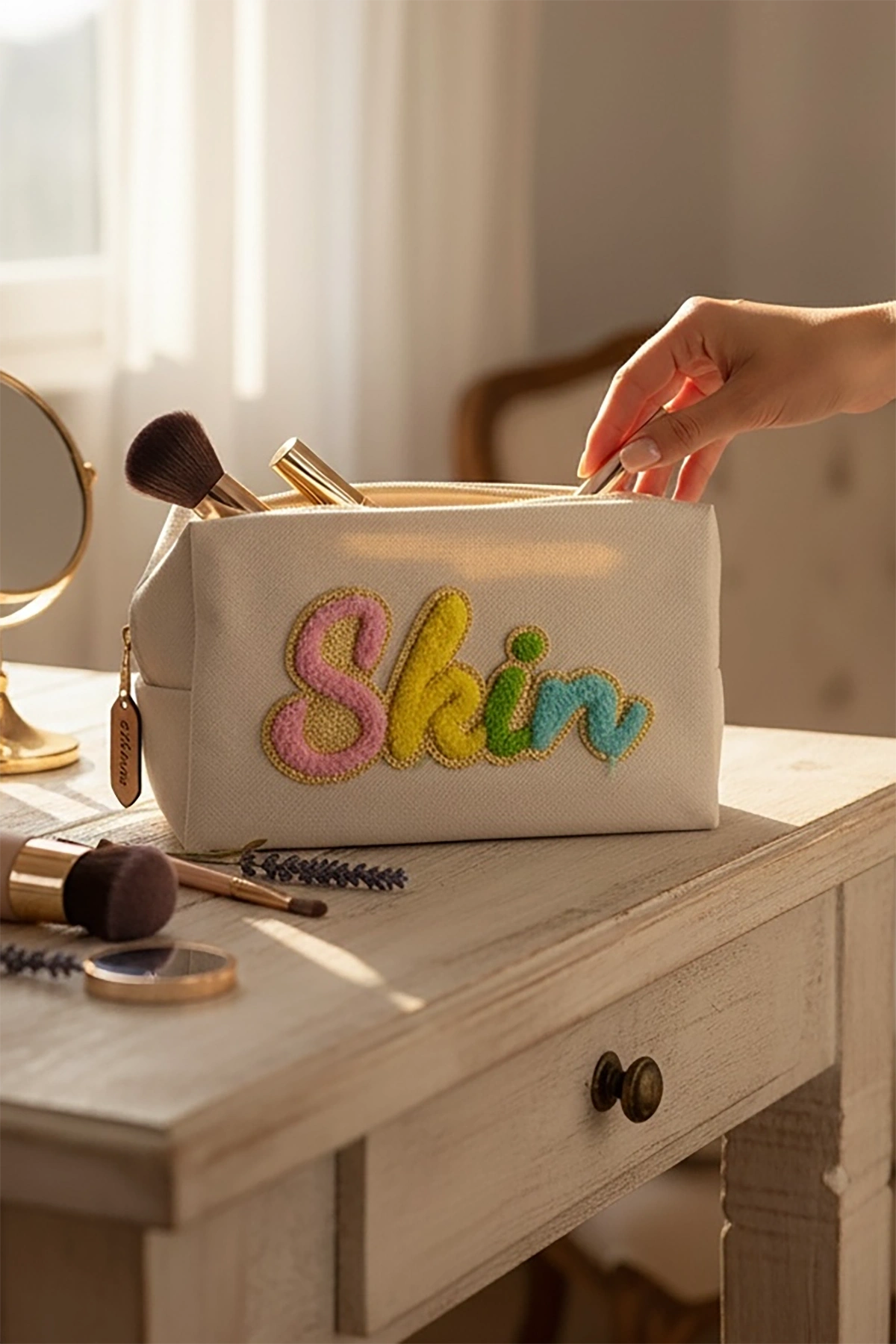 Bej Renk Skin Yazılı Makyaj Çantası