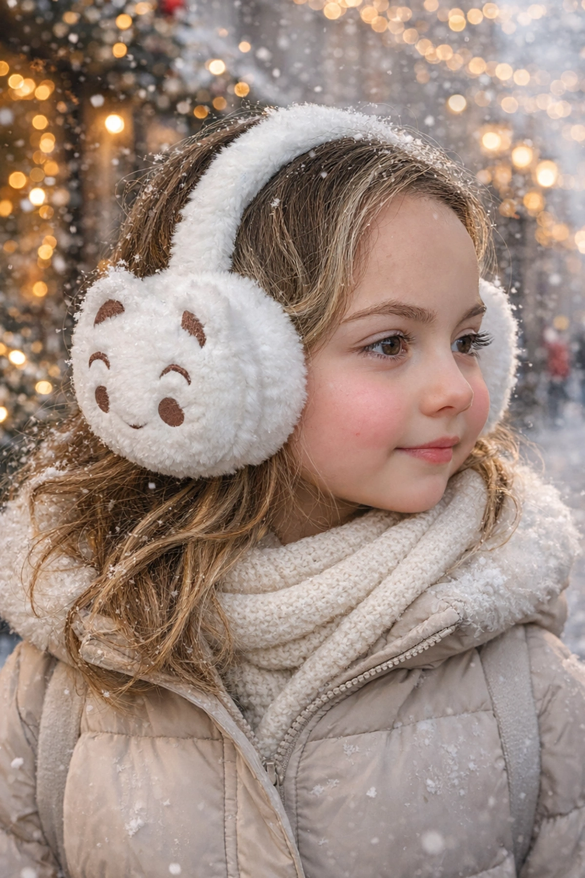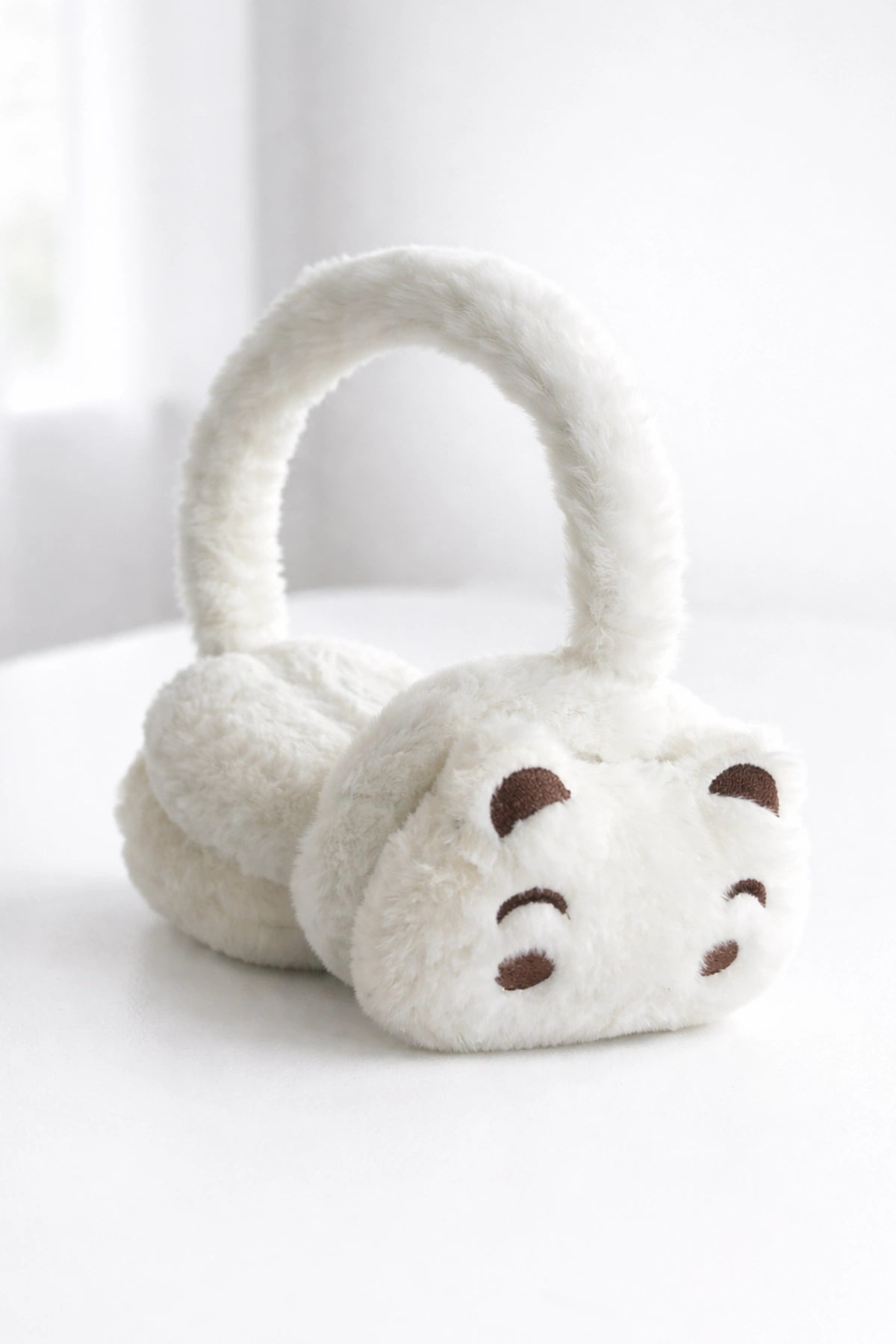 Beyaz Renk Ayıcık Figürlü Peluş Kulaklık
