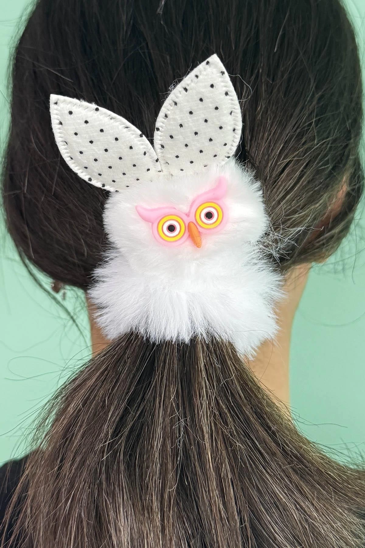 Beyaz Renk Baykuş Figürlü Peluş Simit Toka