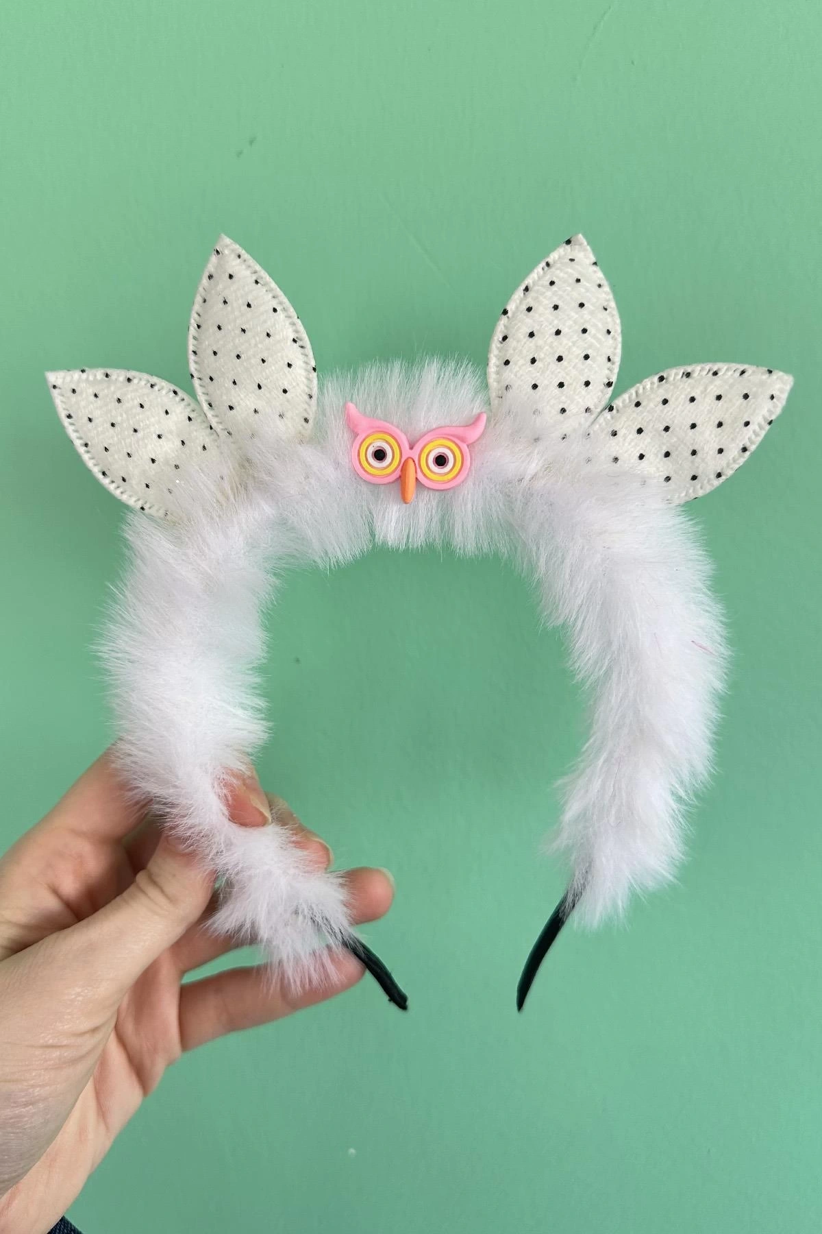 Beyaz Renk Baykuş Figürlü Peluş Taç