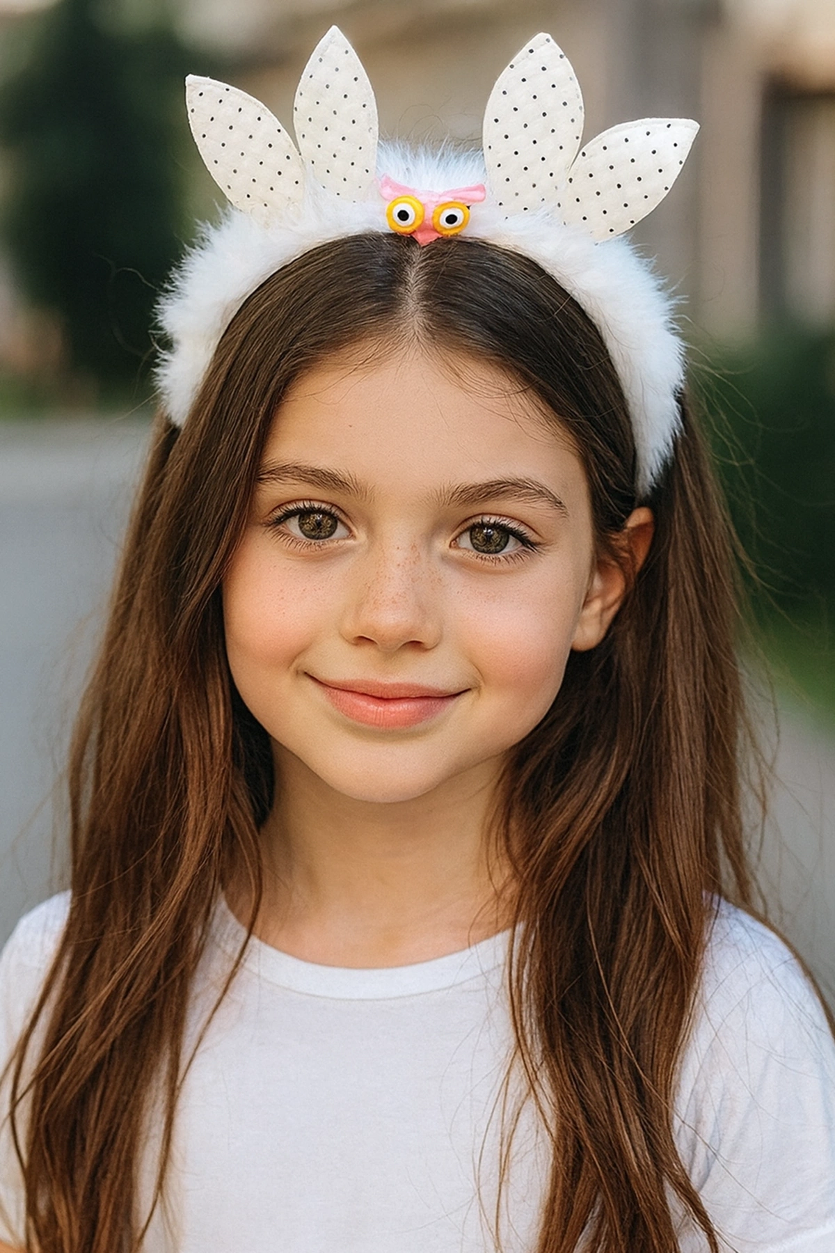 Beyaz Renk Kulak Figürlü Peluş Taç