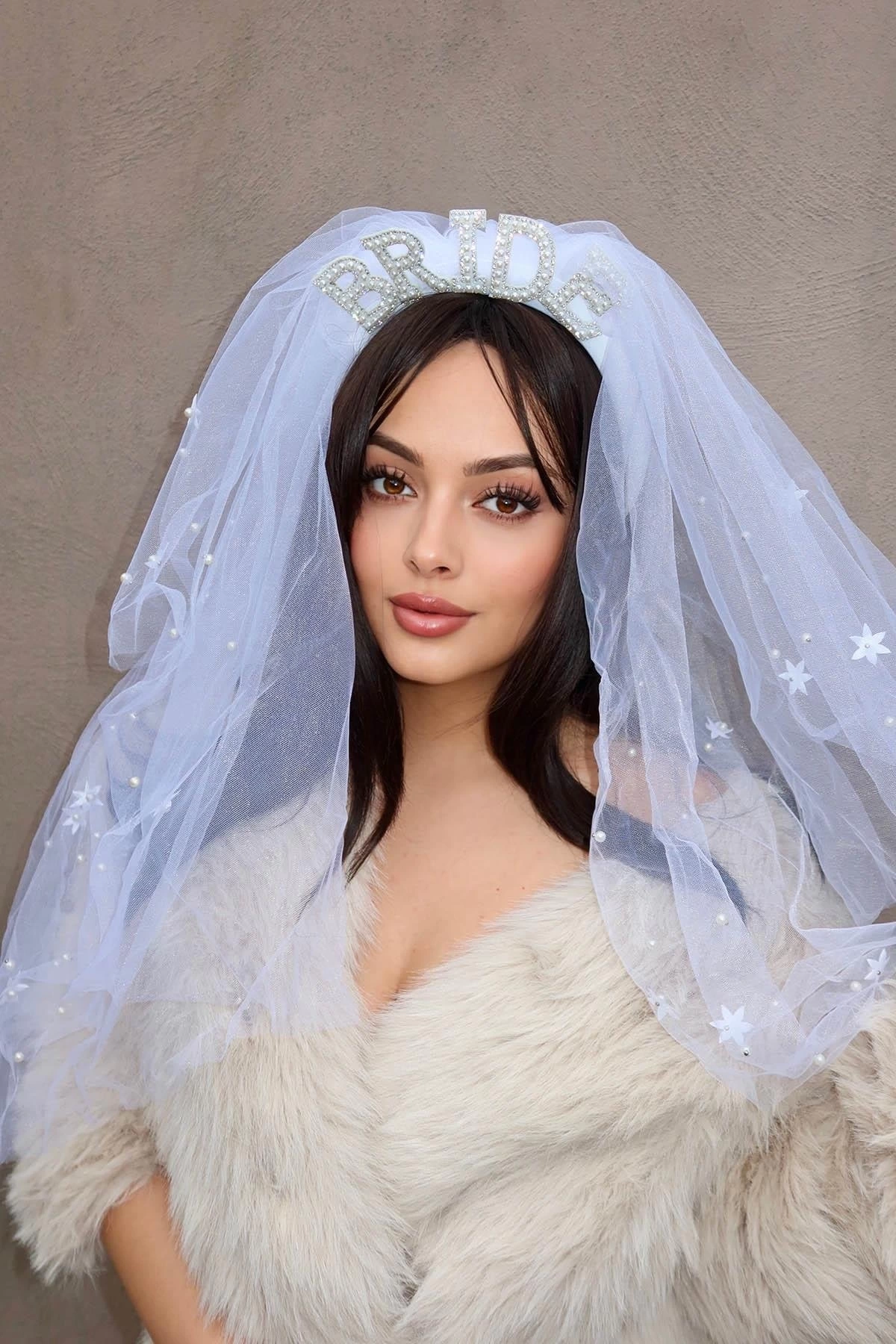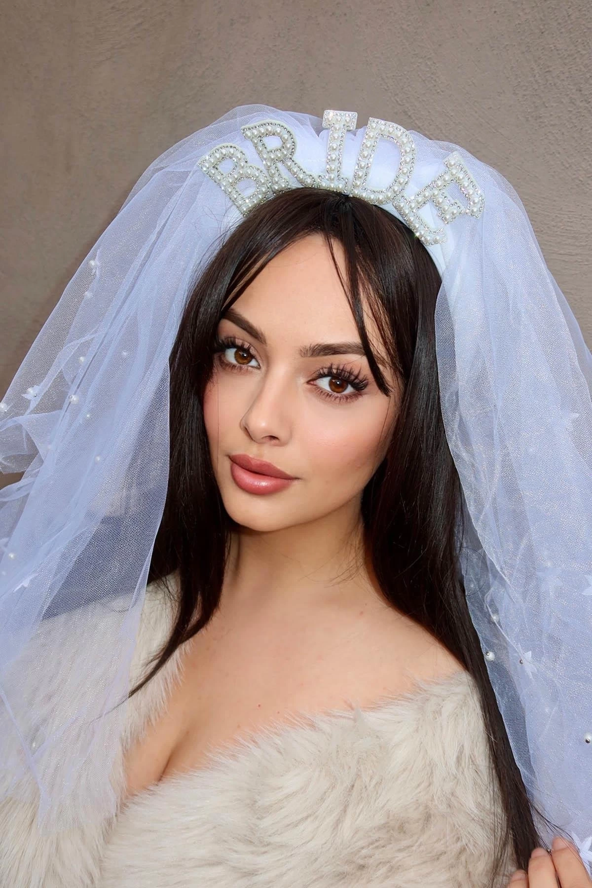 Beyaz Renk Bride Yazılı Duvak Detaylı Gelin Taç