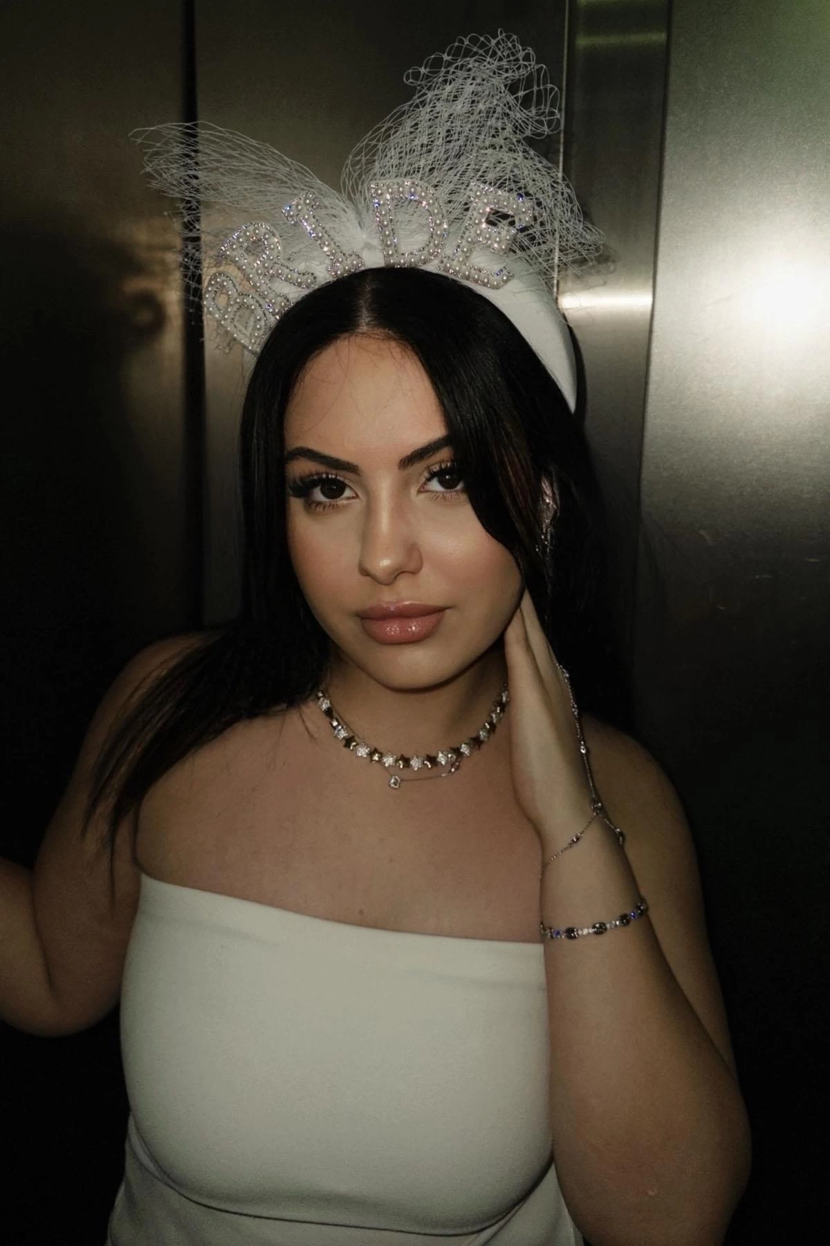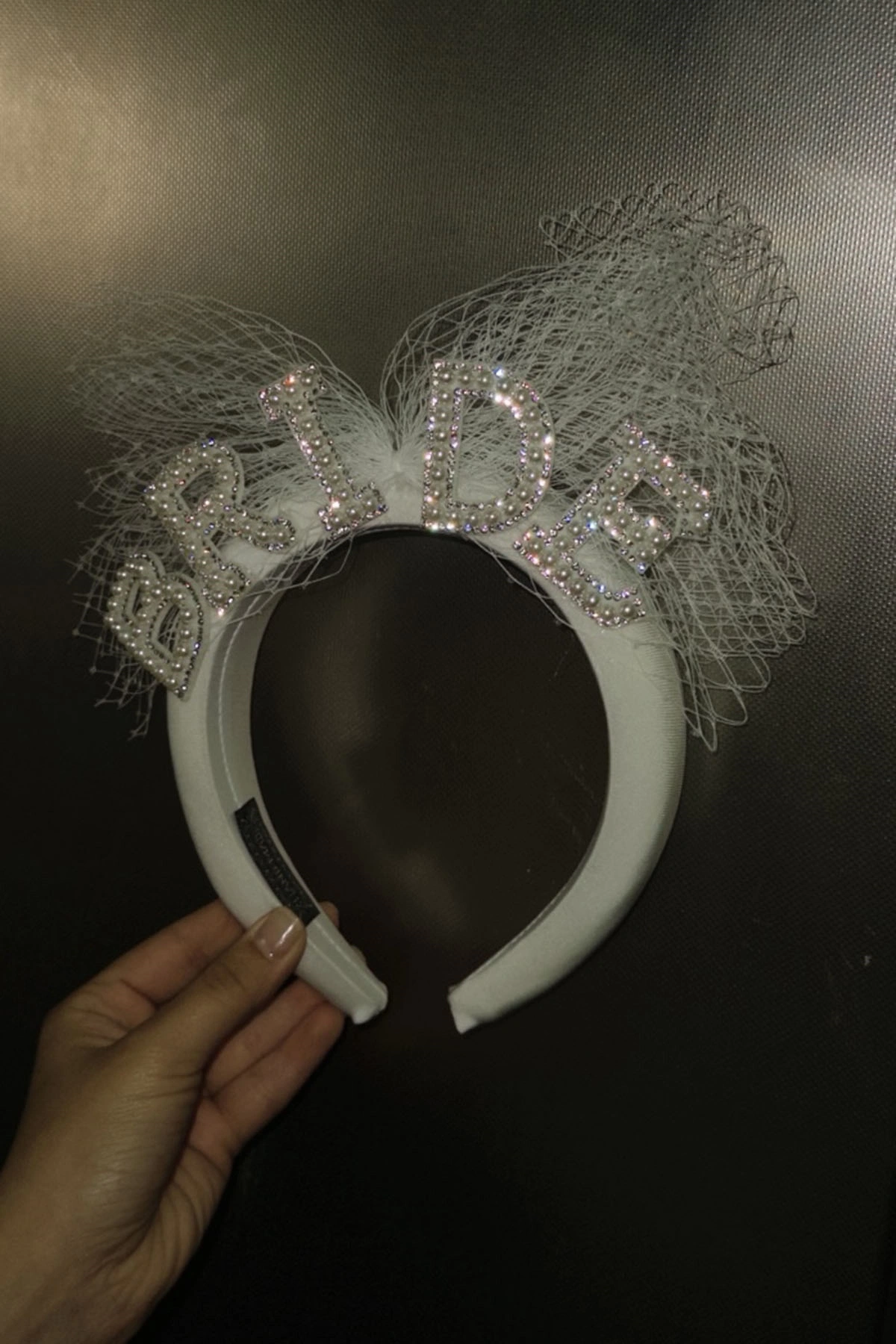 Beyaz Renk Bride Yazılı İnci Detaylı Tüllü Gelin Taç