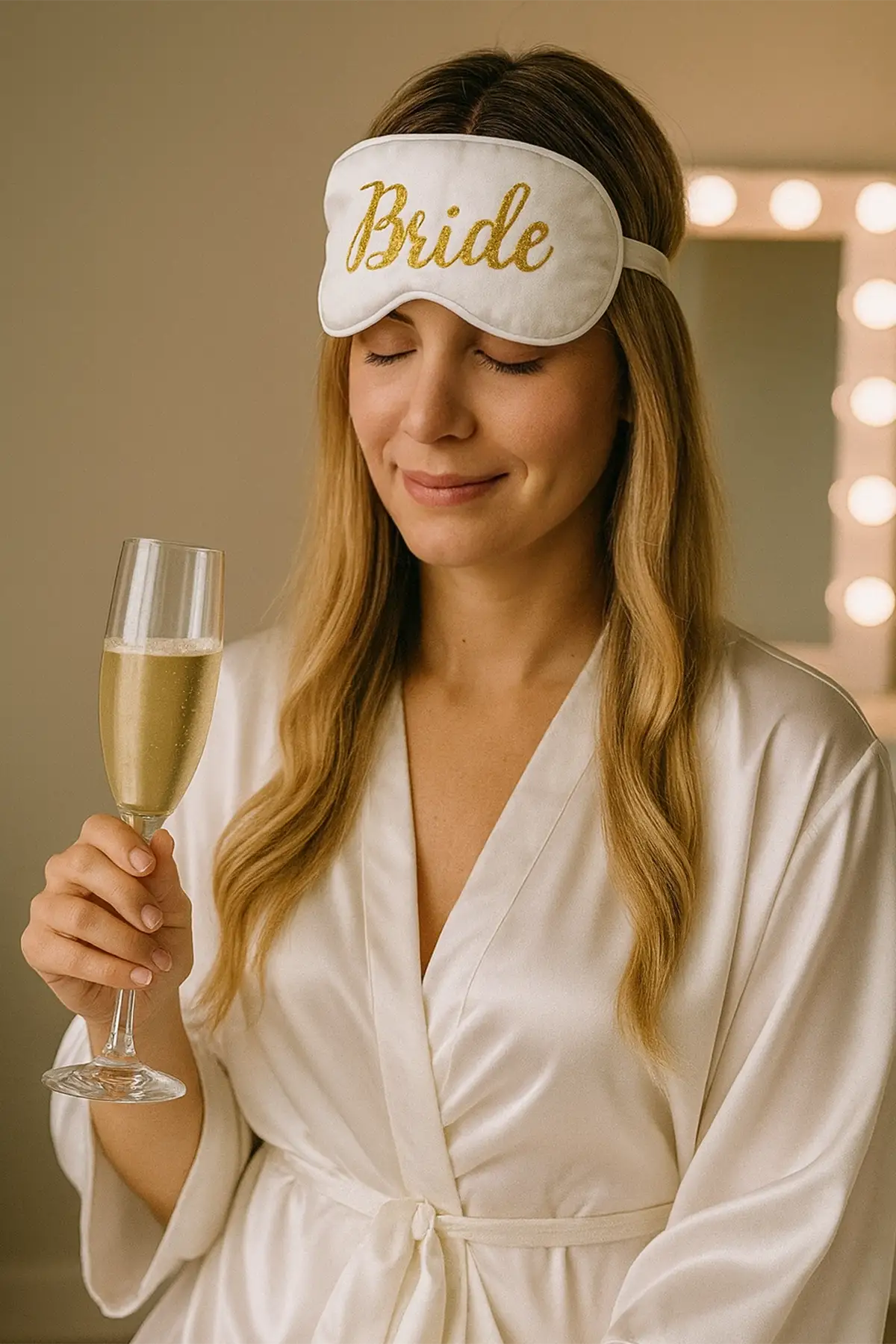 Beyaz Renk Bride Yazılı Saten Uyku Bandı