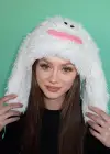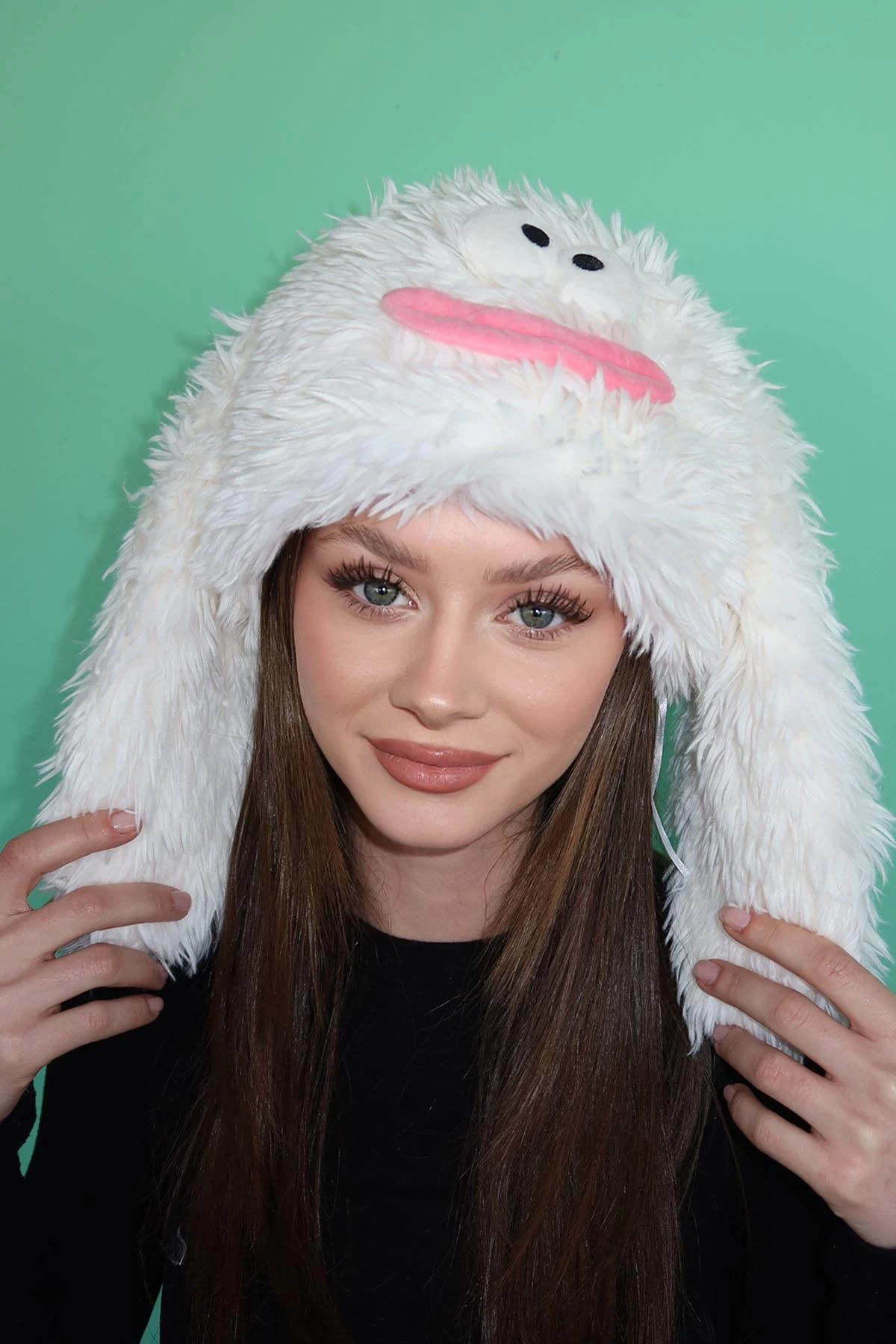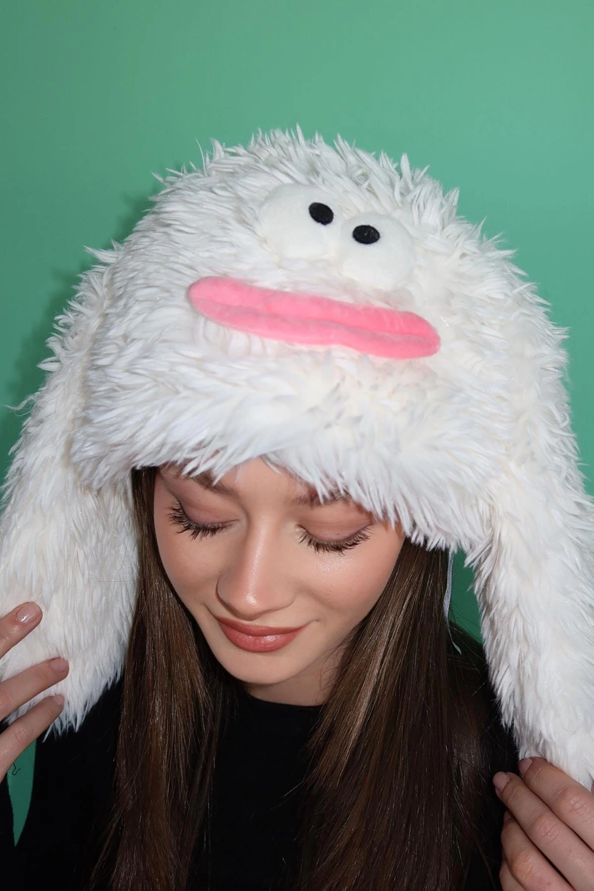 Beyaz Renk Canavar Figürlü Kulaklı Peluş Şapka