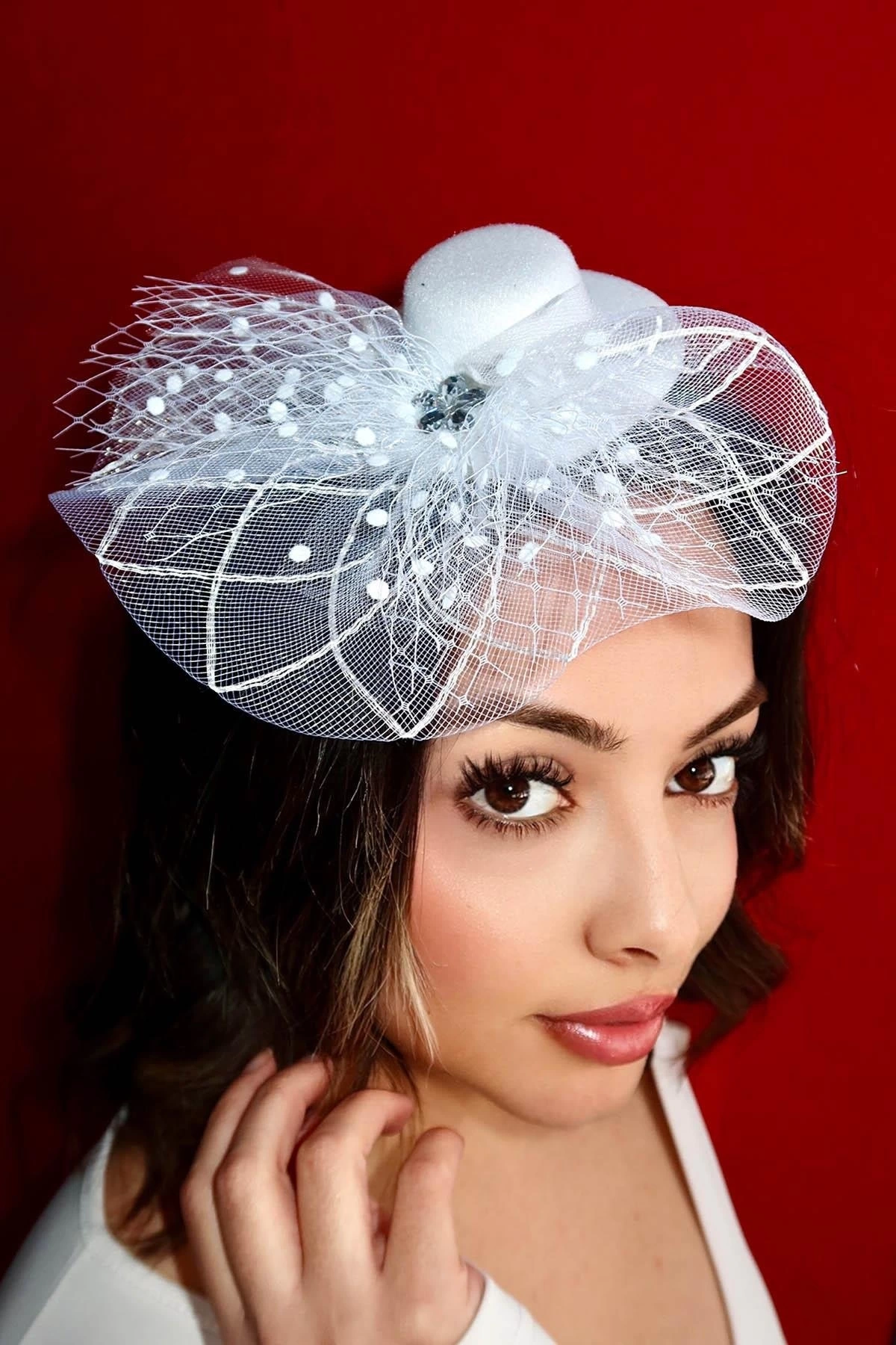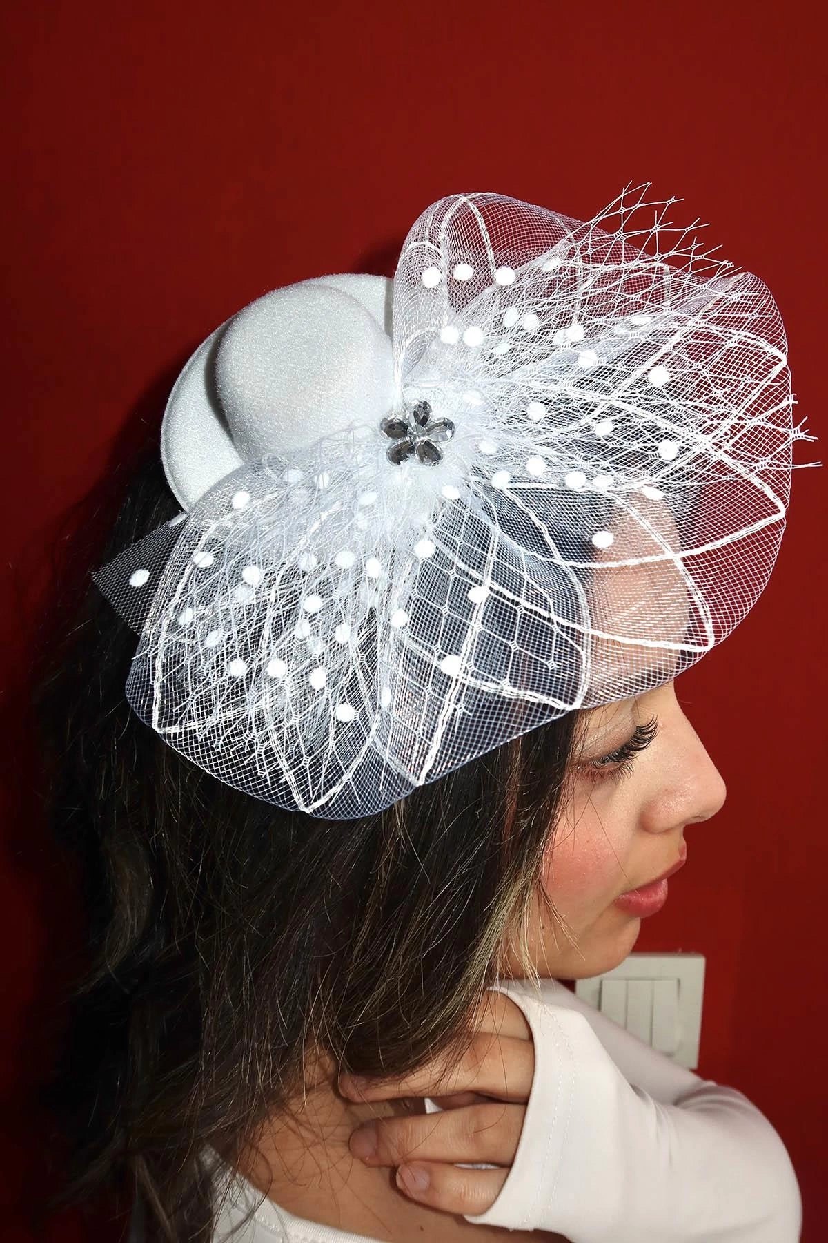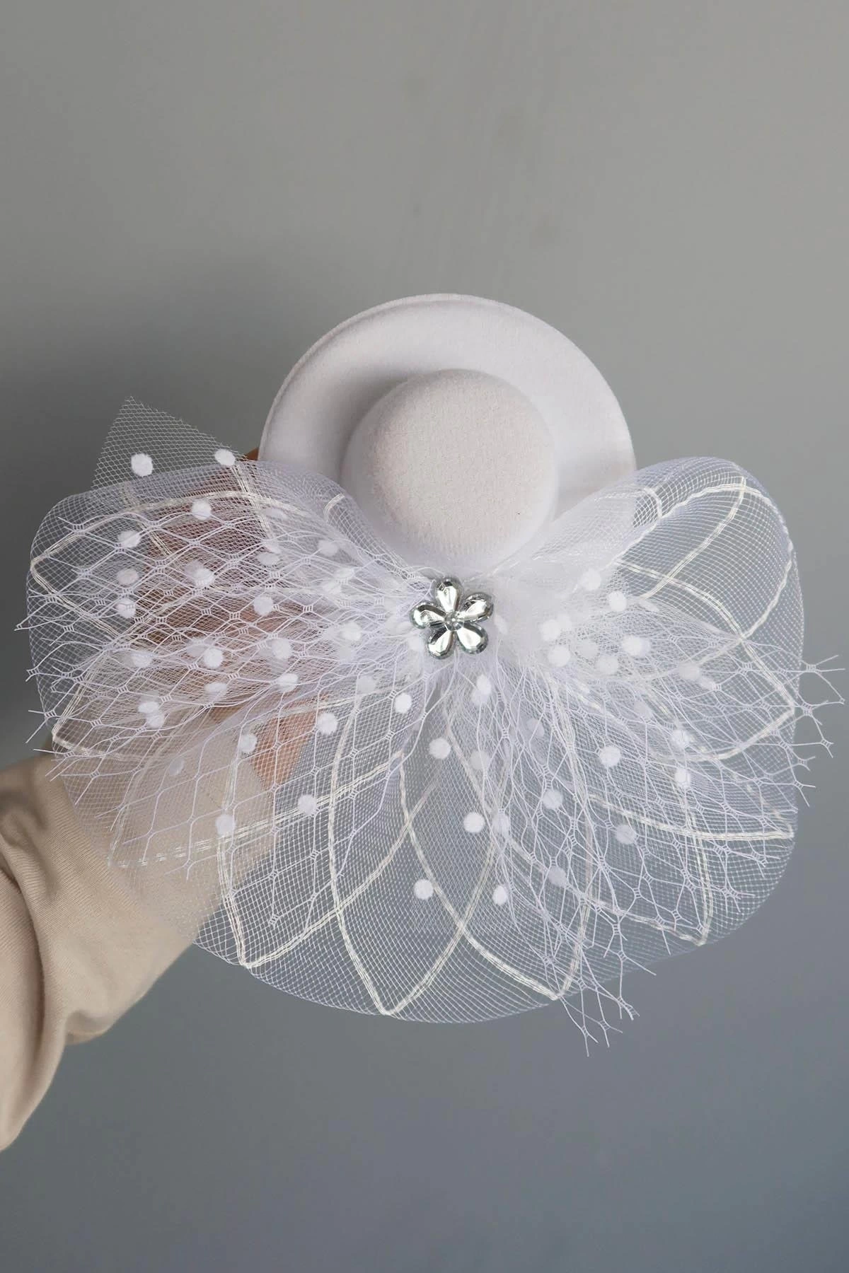 Beyaz Renk Çiçek Detaylı Nikah Şapkası/Vualet Şapka