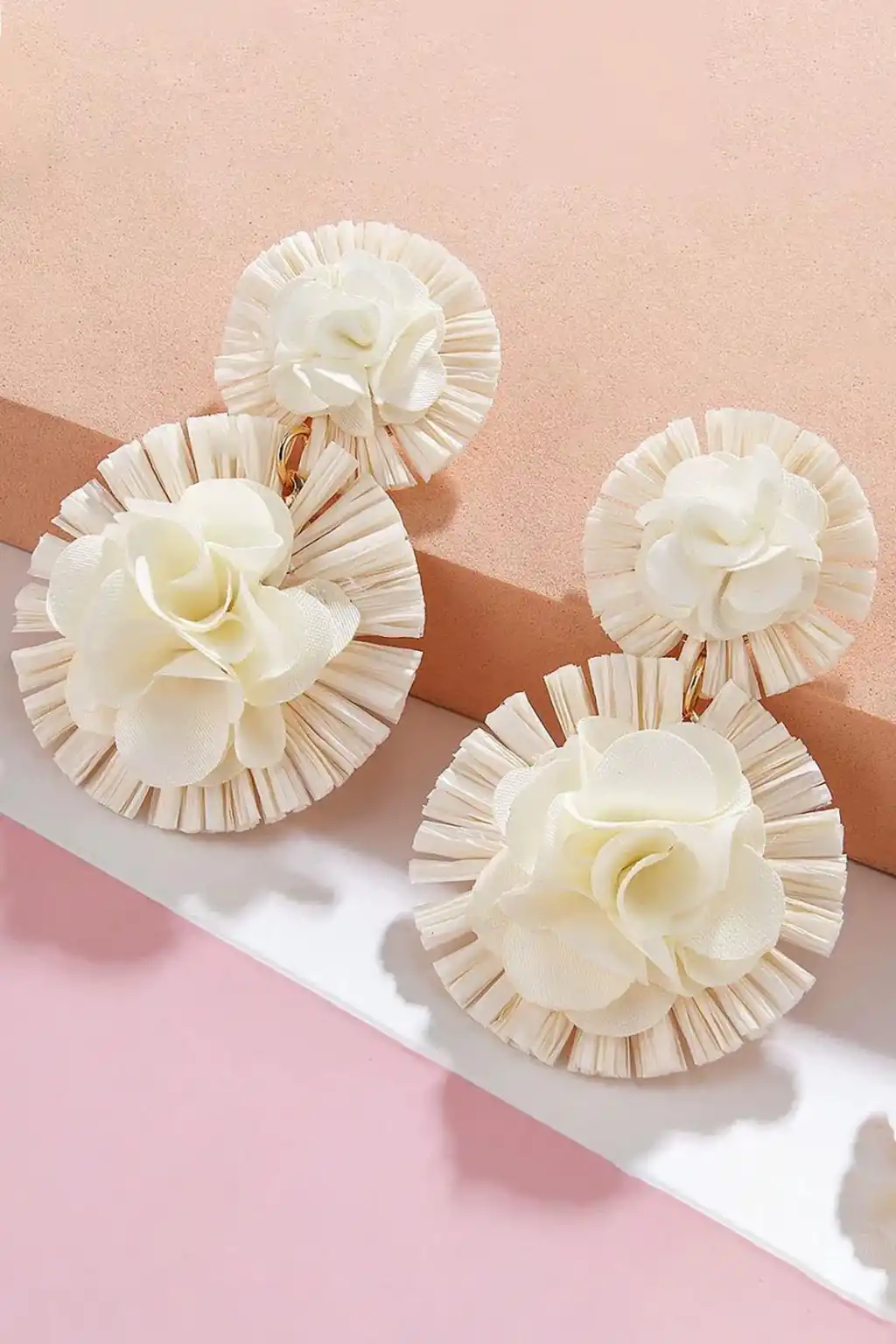 Beyaz Renk Çiçek Figürlü Küpe (Çift)