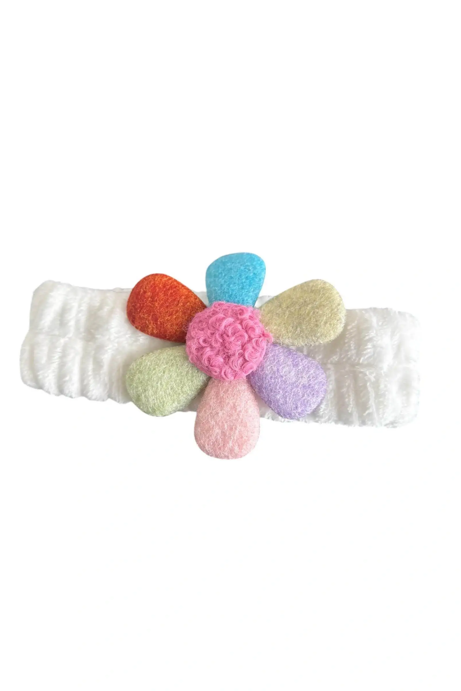 Beyaz Renk Çiçek Figürlü Peluş Saç Bandı
