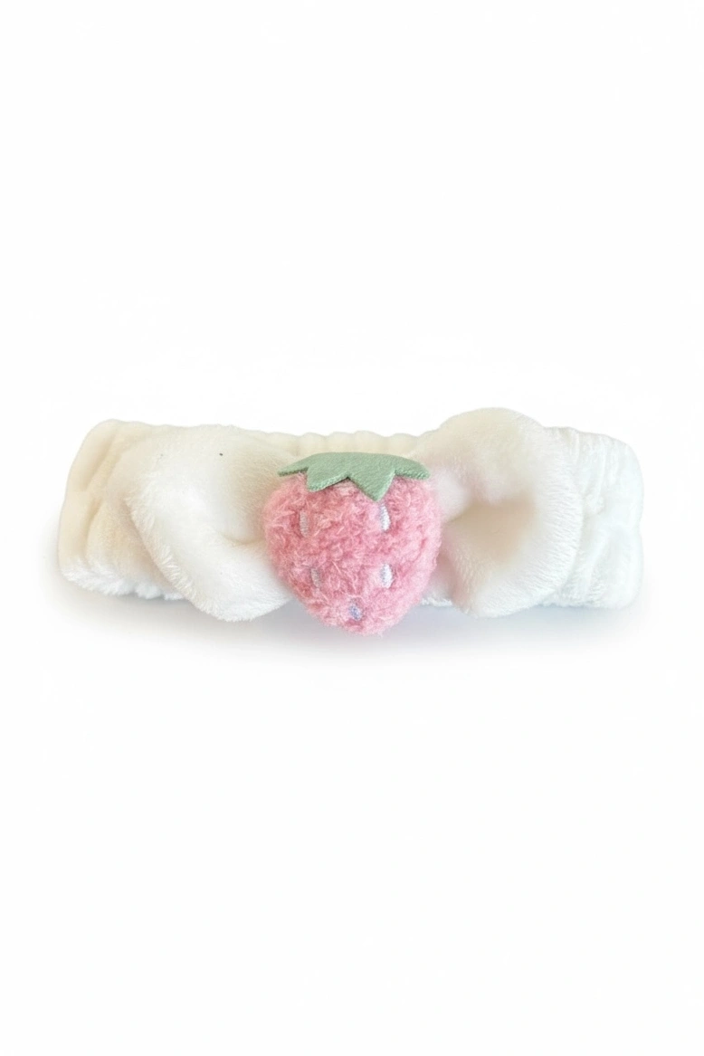 Beyaz Renk Çilek Figürlü Peluş Saç Bandı