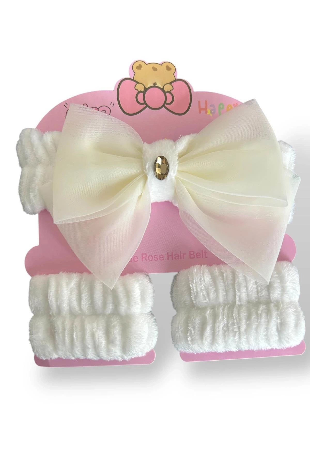 Beyaz Renk Fiyonk Detaylı Su Emici Havlu Bileklik Saç Bandı