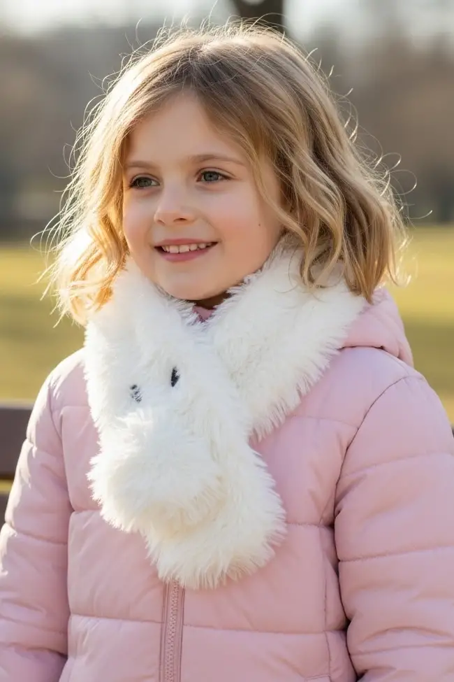 Beyaz Renk Göz Detaylı Peluş Çocuk Atkı