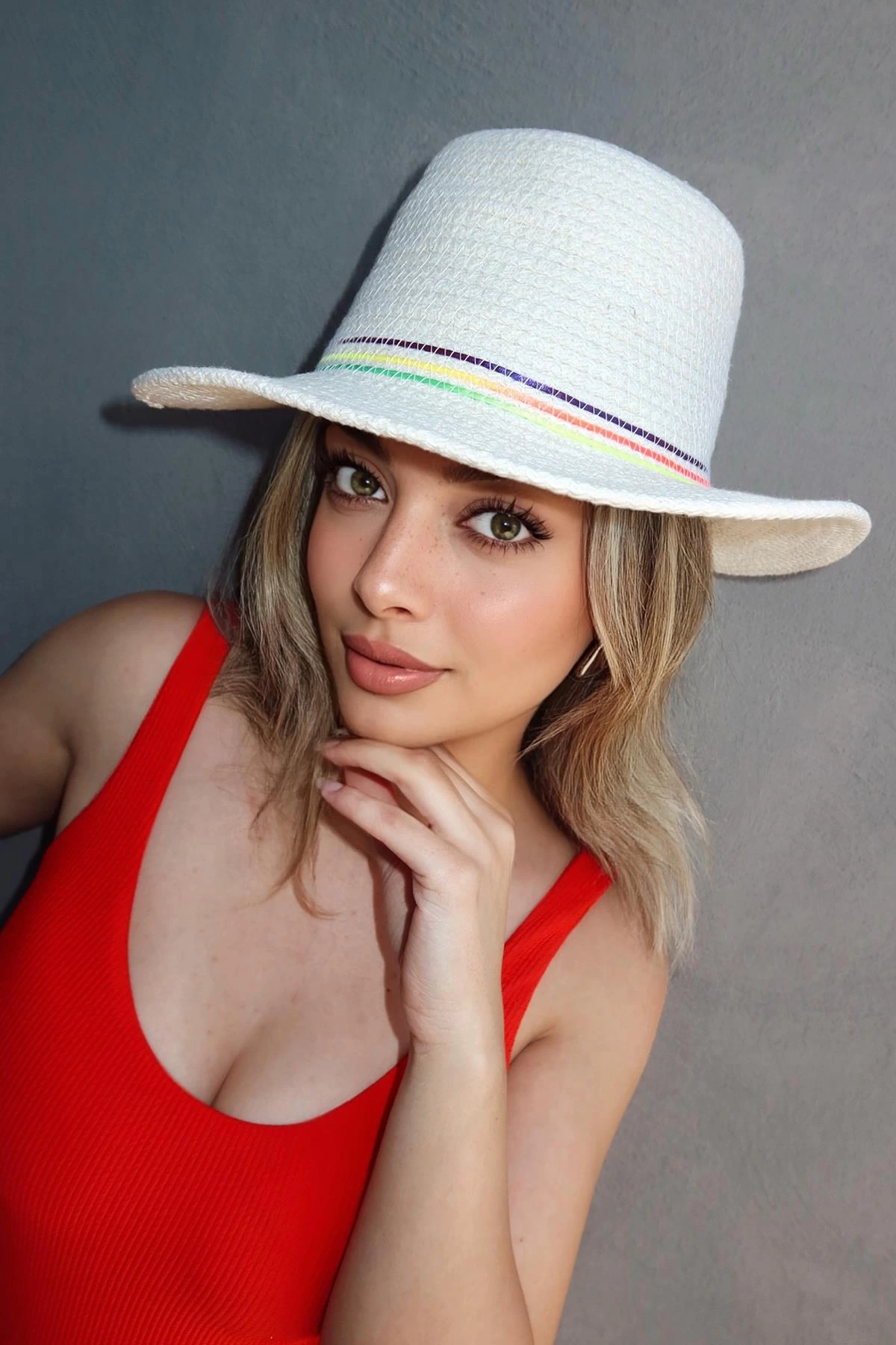 Beyaz Renk Hasır Şapka