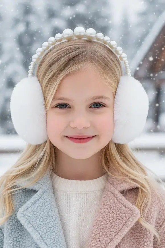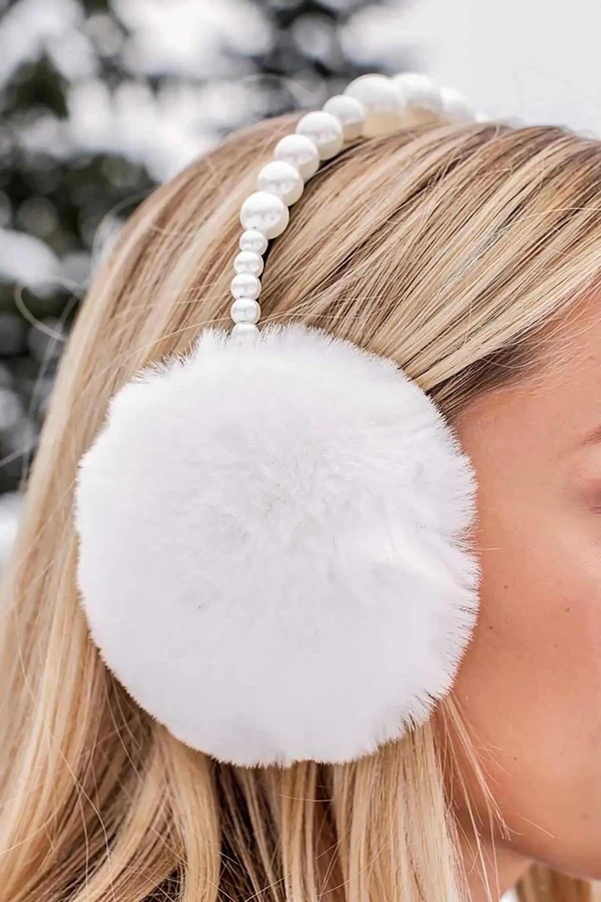 Beyaz Renk İnci Detaylı Peluş Kulaklık