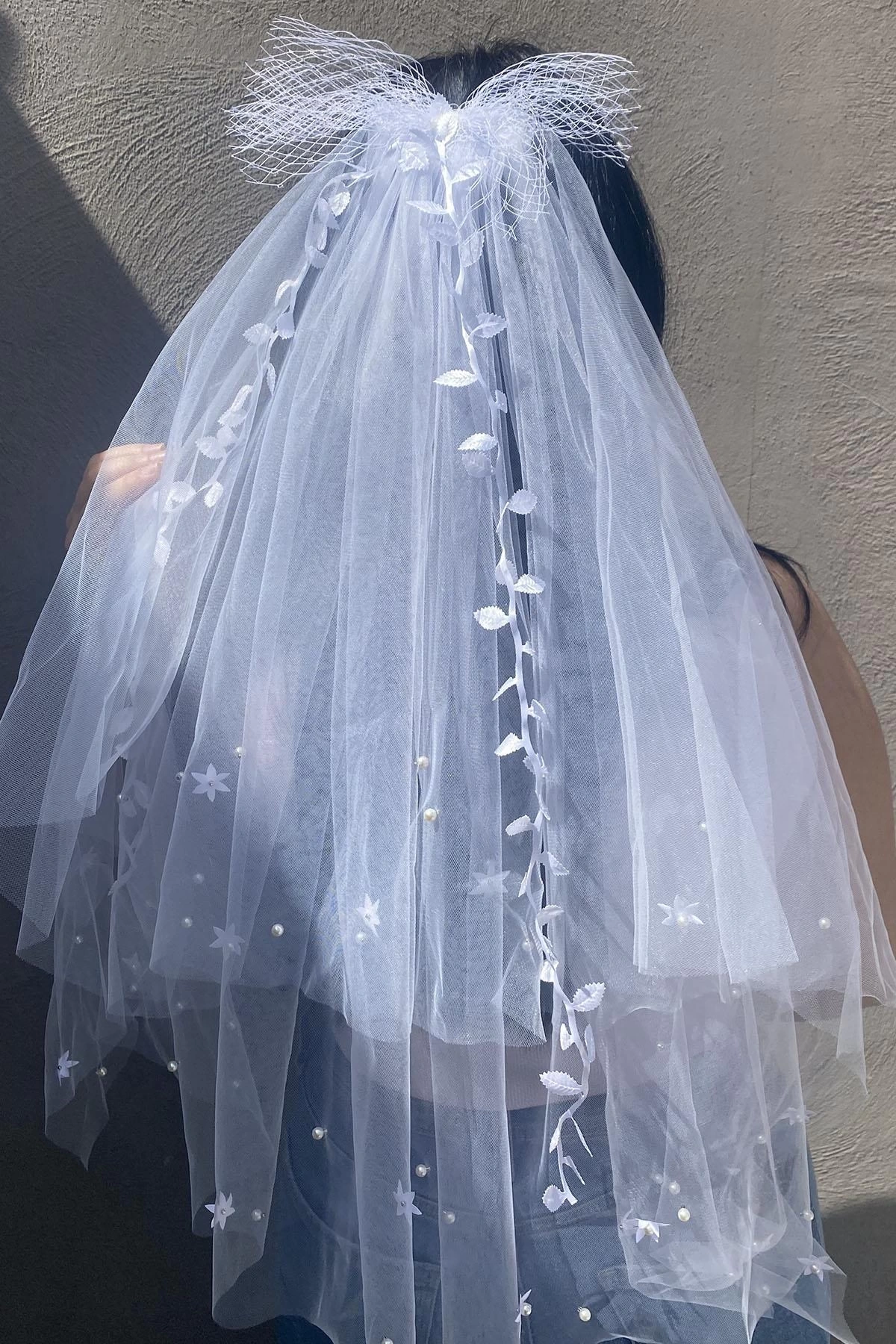 Beyaz Renk İnci Detaylı Prenses Duvak