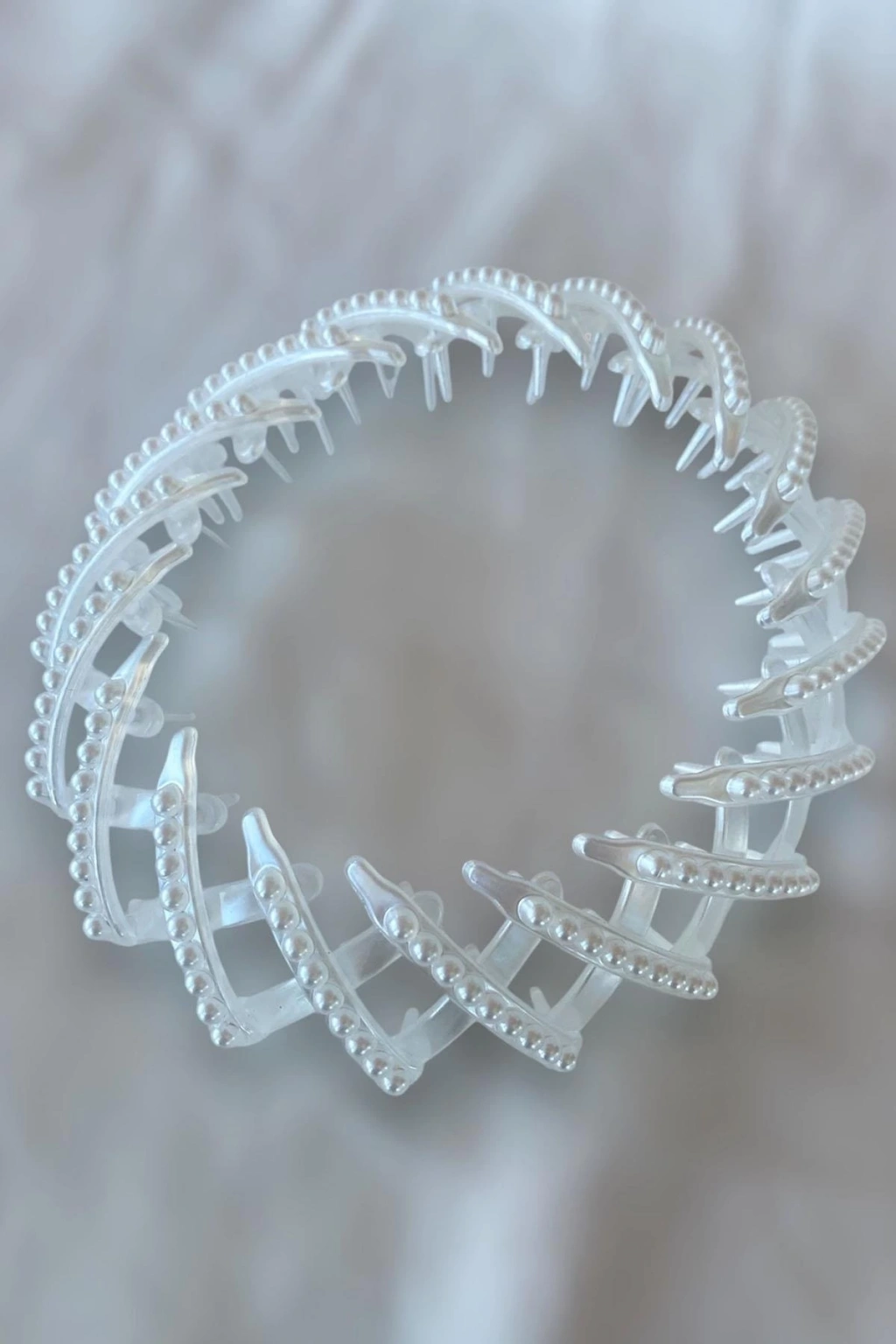 Beyaz Renk İnci Detaylı Topuz Aparatı/ Tokası