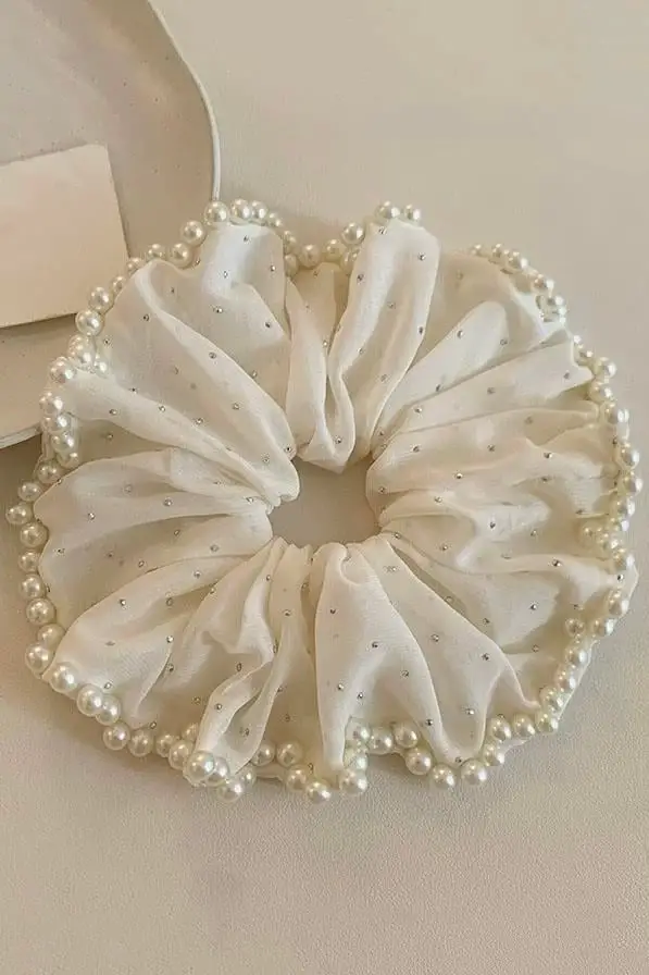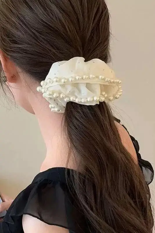 Beyaz Renk İnci Ve Taş Detaylı Simit Toka