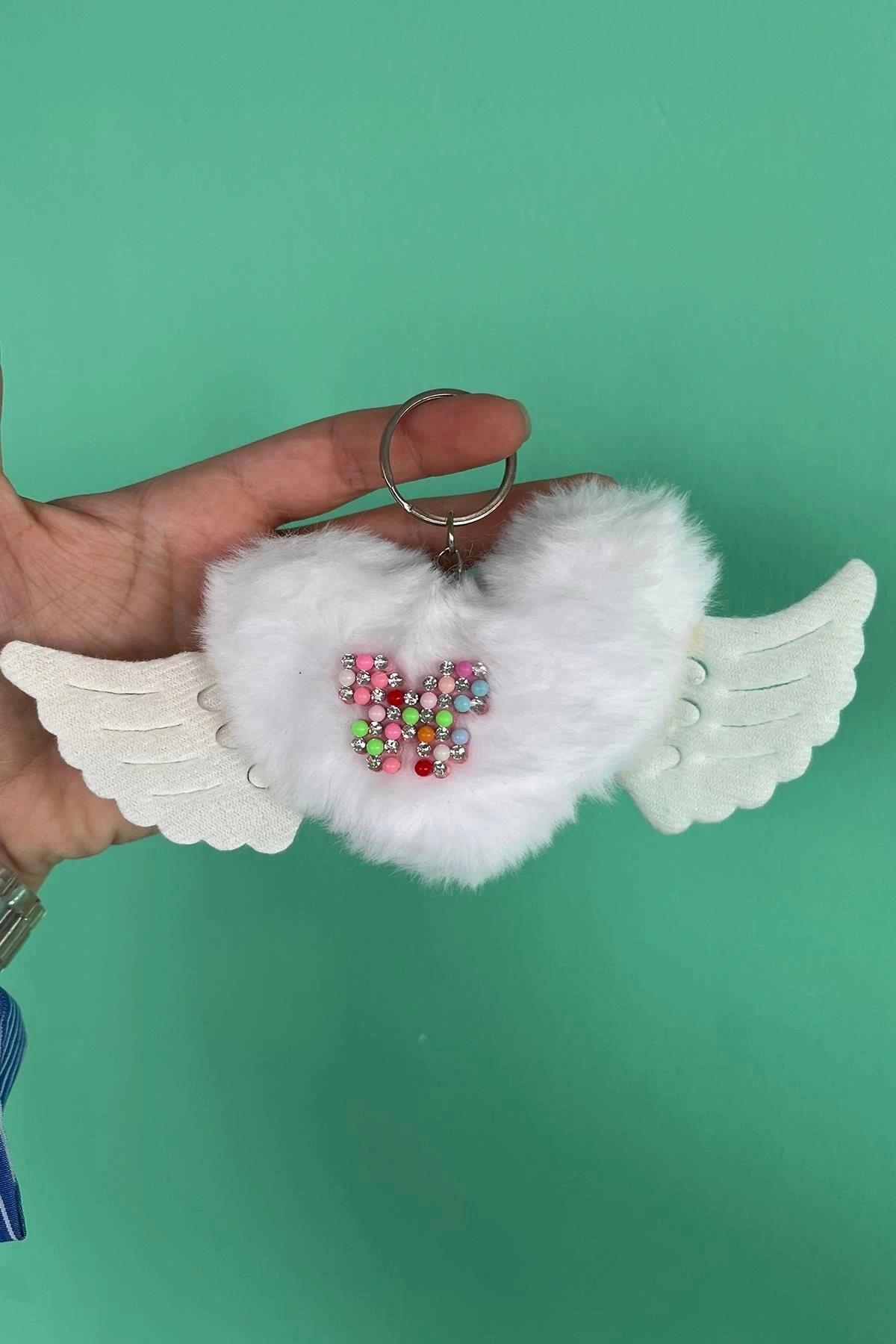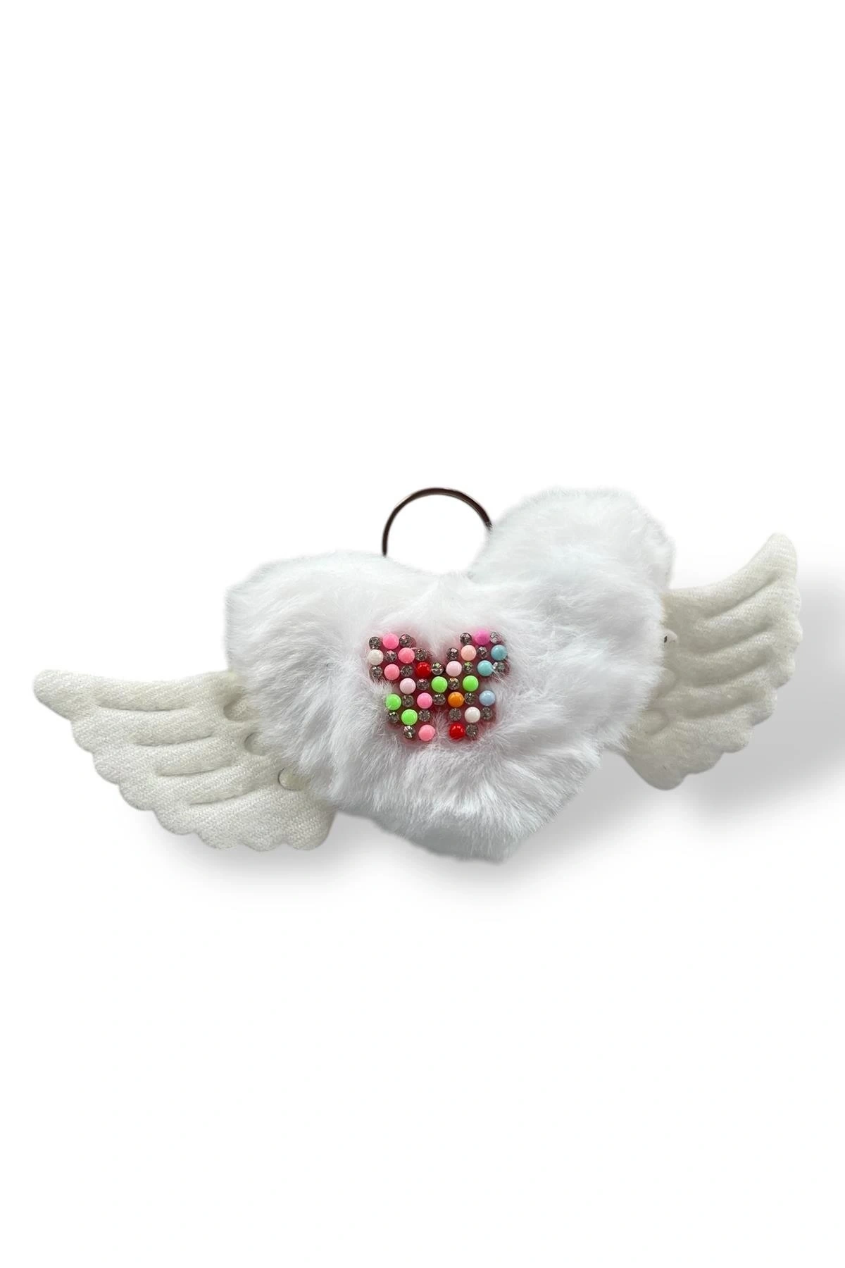 Beyaz Renk Karışık Figürlü Kelebek Detaylı Peluş Anahtarlık