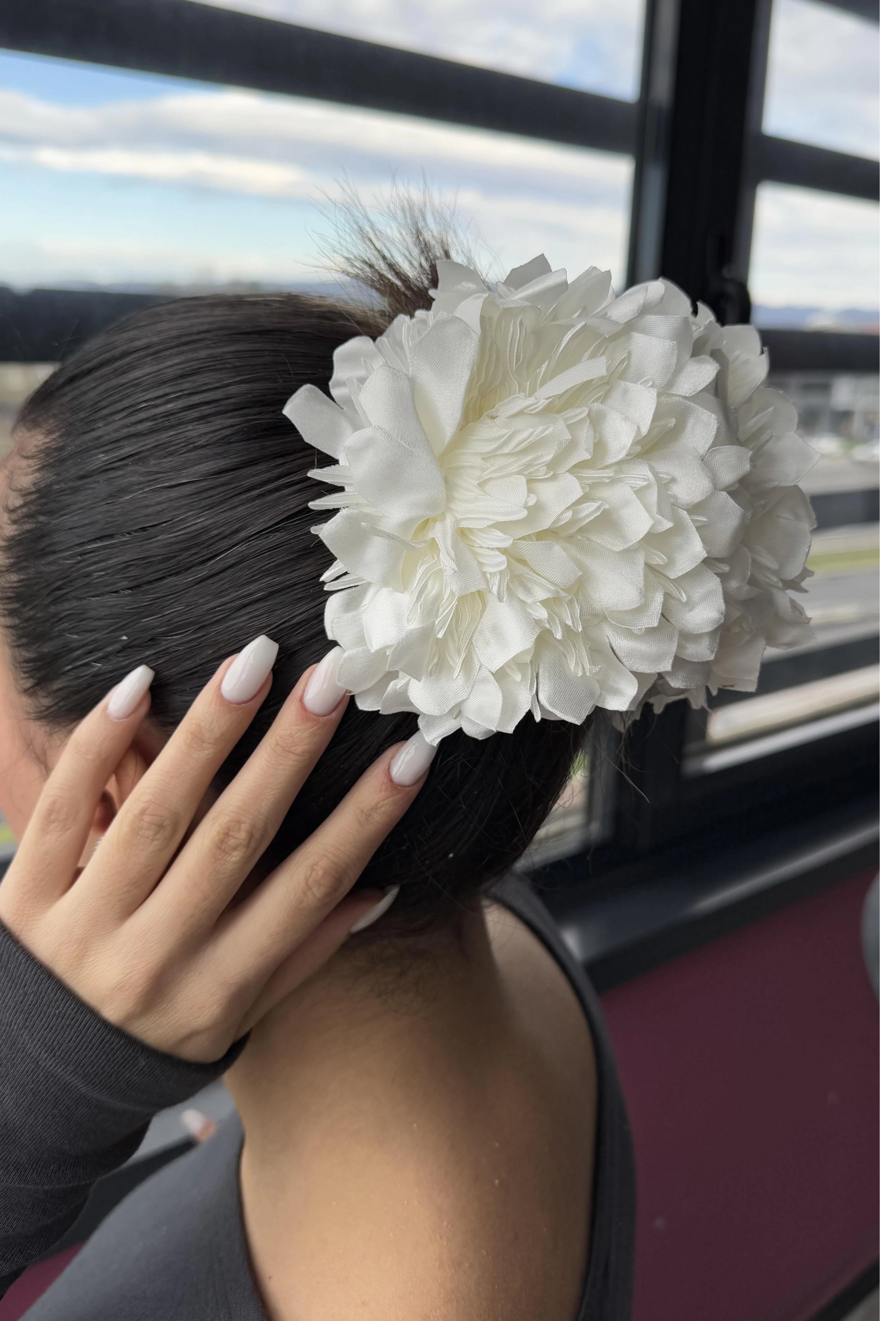 Beyaz Renk Kasımpatı Çiçeği Detaylı Mandal Toka