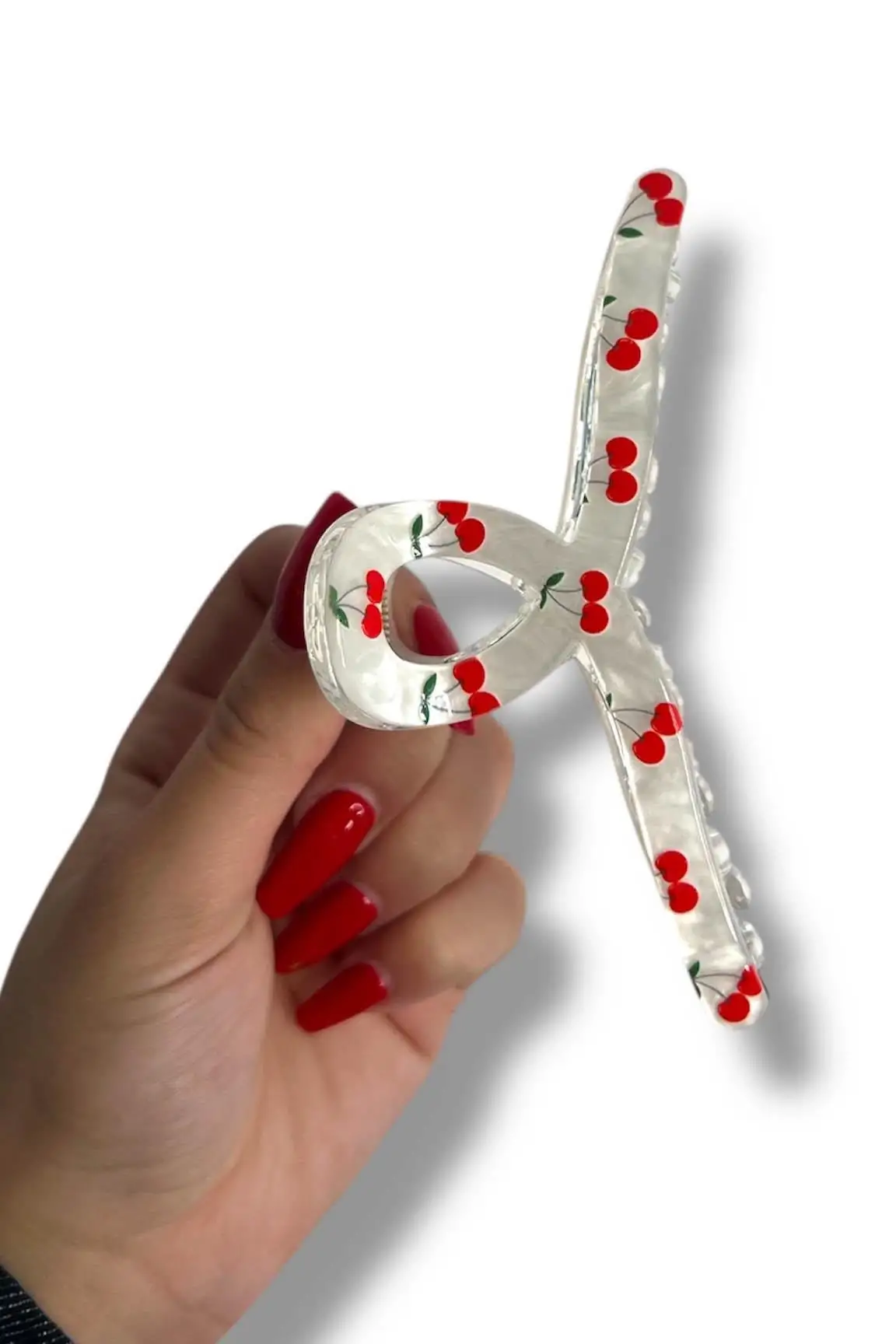 Beyaz Renk Kiraz Figürlü Mandal Toka