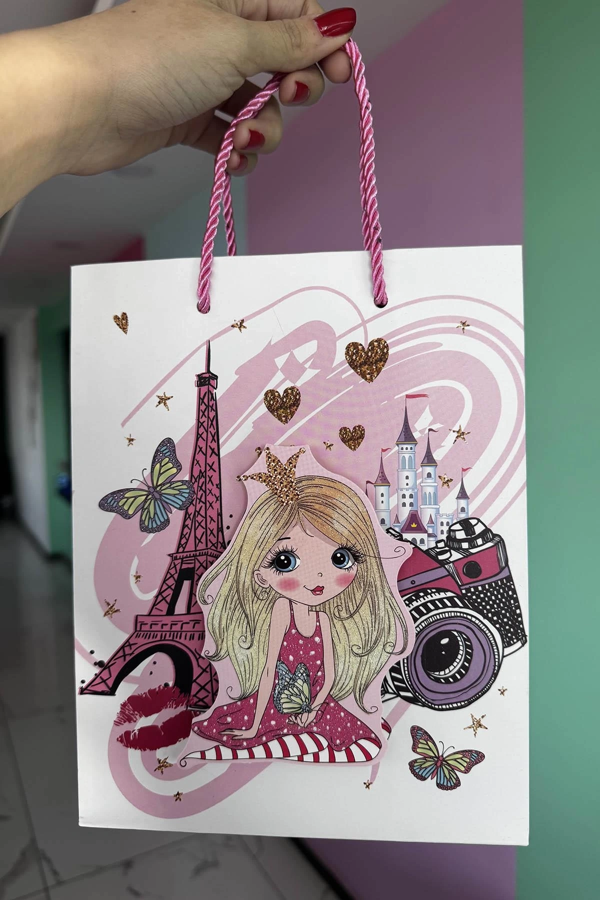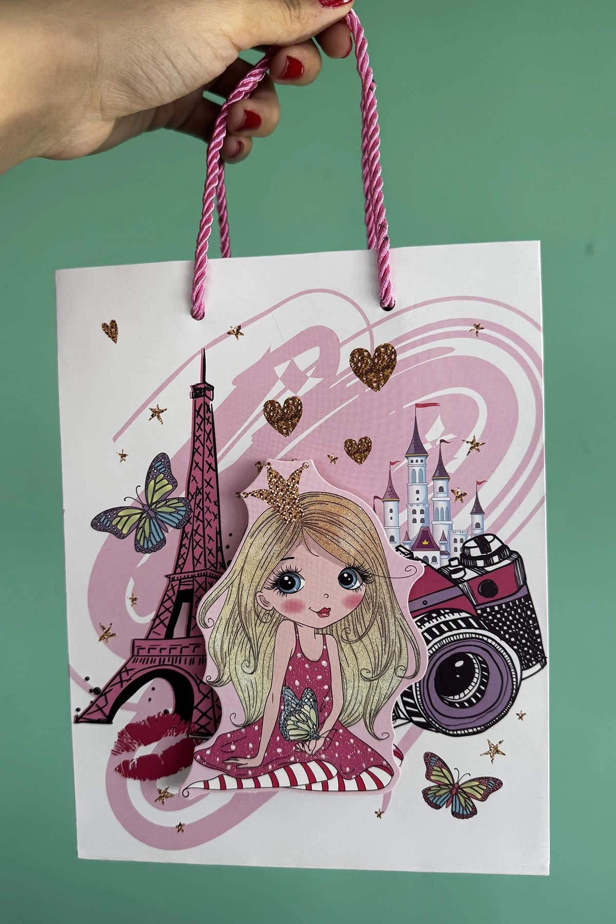 Beyaz Renk Kız Figürlü 3D Görünümlü Karton Çanta