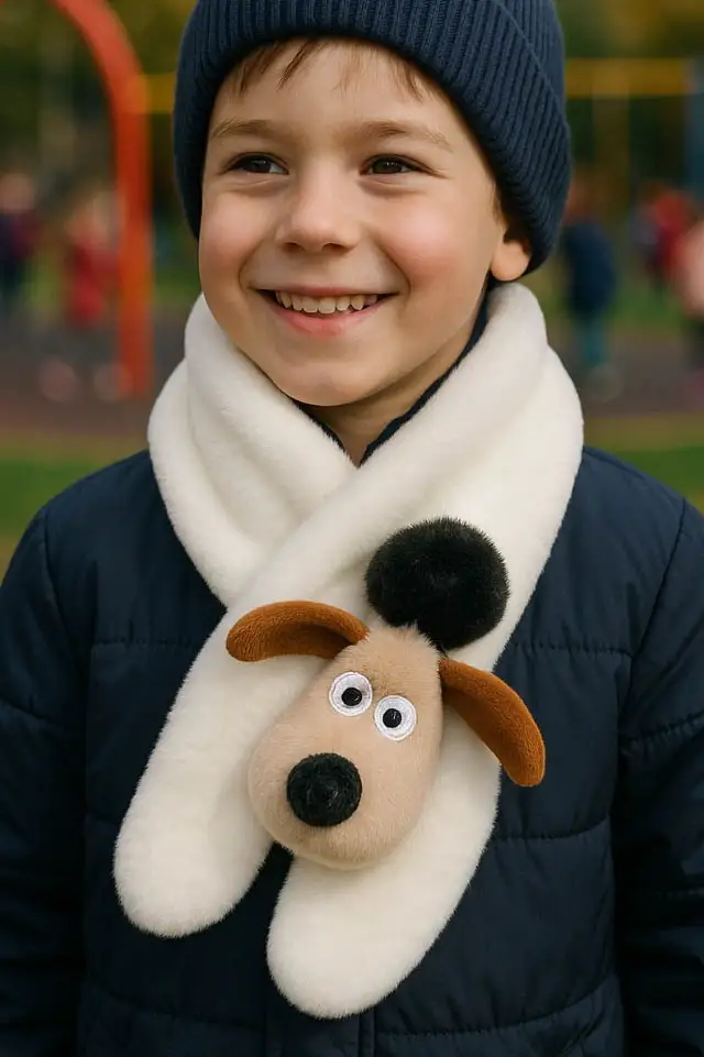 Gri Renk Köpek Figürlü Çocuk Peluş Atkı
